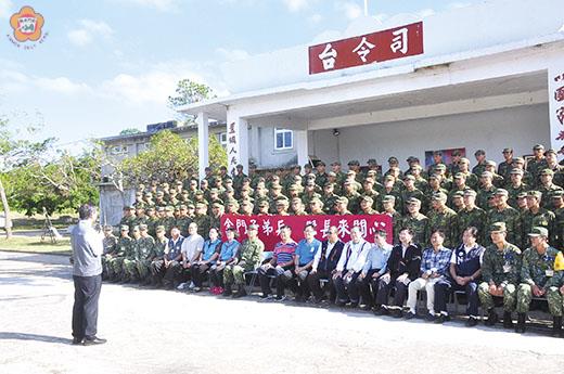 縣府和各鄉鎮首長昨(12)日上午前往金防部幹訓班慰問148位甫入伍6週的金門籍役男們,秘書長林德恭勉勵正在接受新兵訓練的弟兄們,新訓是一種考驗和試煉,能夠讓大家未來好面對更多不同的挑戰。林德恭也認為,金門適合成為全國入伍兵的專屬「新訓中心」。 金門縣政府和各鄉鎮首長昨日組成勞軍團,由秘書長林德恭領軍,前往金防部幹訓班慰問148位剛入伍6週、正在服4個月「軍事訓練役」的金門役男們,一行人帶上咖啡和蛋糕給役男們享用,讓役男們「懷念」一下「外界」的食物,林德恭也致贈加菜金給幹訓班,並與弟兄們一同合影。 秘書長林德恭致詞時表示,一進到幹訓班便感受到弟兄們精神抖擻的朝氣,他代表縣長陳福海,對於金防部對金門子弟無微不至的照顧以及精實的訓練,致上最高敬意與謝意。林德恭提到,金門在地子弟兵就地在金門受訓,是鄉親父老的期待,如此部隊放假,弟兄們就可以回到自己家裡休息,不必像過去,還得漂洋過海到台灣成功嶺去受訓,周末放假短短2天也不知道該不該回金門。林德恭也勉勵,新兵訓練對於弟兄們來說是一種考驗和試煉,透過這樣的兵力訓練,能夠讓各位未來投入社會時,更能夠適應大環境,好面對更多不同的挑戰。金防部少將政戰主任武立文則是代表中將指揮官郝以知表達感謝。 另外,林德恭也與武立文聊到,他認為金門的戰地背景,適合成為新兵訓練的場所,不只是訓練金門在地子弟兵,更是全台灣「新兵」都可以帶到金門來接受訓練,如此也可以振興金門在地經濟,恢復到往年「十萬大軍」的榮景。