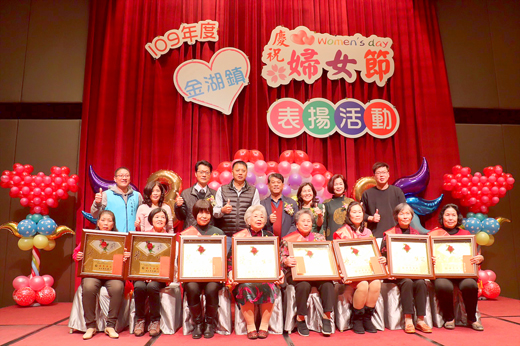 婦女節將至,金湖鎮公所於昨(6)日晚間表揚金湖鎮模範婆媳和模範婦女,今年金湖鎮表揚張淑貞、孫乃崴等14位模範婆媳以及李張玉意等8位模範婦女,由金湖鎮長陳文顧親自頒獎表揚,肯定她們對於家庭與社會的貢獻及辛勞的付出。 金湖鎮109年受表揚的模範婆媳包括:陳張翠鑾、蔡素玉(正義里)、葉鳳嬌、薛依寧(山外里)、陳素真、辛瑞芝(新市里)、唐束華、黃翠玉(瓊林里)、呂陳能意、蔡曉茹(蓮庵里)、楊翠雲、郭萍(溪湖里)、郭美玉、蔡曉嵐(料羅里)。獲得表揚的模範婦女則有:李張玉意(新湖里)、王余秀華(正義里)、陳碧霞(山外里)、周能珠(新市里)、許玉麗(瓊林里)、張慧玉(蓮庵里)、蔡麗華(溪湖里)、楊蓓柔(料羅里)。 昨晚表揚活動由鎮長陳文顧擔任頒獎人,包括金門縣政府社會處副處長李廣榮、金湖鎮代會主席蔡乃靖、副主席林麗芬、鎮代表蔡建偉、蔡建立、陳向鑫、李秀華、林嘉森、陳秀卿、洪海水,調解委員會主席李孝光、大同之家主任楊志斌、金沙鎮代會主席周水土以及金湖各里長都到場,向獲獎婦女致意。 陳文顧表示,成功男人的背後都是有偉大女人的支持,這也表示婦女在各領域的貢獻,尤其在家庭,她們的付出是沒有薪水的,只有奉獻,有的婦女更是走出社會來服務,從事志工活動,或是有益於社會的公益活動,他也藉著表揚活動,代表金湖鎮祝福獲獎的模範婦女,他希望藉由表揚活動,讓社會有更為良善的風氣。 主席蔡乃靖表示,金門民風純樸,婦女都有勤儉習慣,金門婦女都相當優秀,而能夠獲得表揚的模範婦女,一定更是出類拔萃。社會處副處長李廣榮指出,他希望藉由模範婦女表揚的事蹟,來讓社會的正向能量有所提升,提高社會善良風氣。