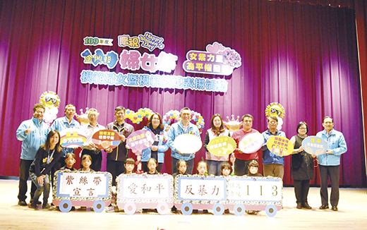 在昨天的金門縣慶祝109年婦女節表揚大會活動中,縣府舉辦「性別平等·友善金門-形象宣導」合影活動,邀請縣長楊鎮浯、立委陳玉珍、社會處處長董燊、警察局長張國雄、地政局長葉媚媚、金城鎮鎮長李誠智、金湖鎮鎮長陳文顧、金沙鎮鎮長吳有家、金寧鄉鄉長楊忠俊、烈嶼鄉鄉長洪若珊、烈嶼鄉代會主席方駿洋等人參與,還有去年參加衛生福利部舉辦社區防暴創意競賽獲得全國第四名的烈嶼青岐社區發展協會一同上台,共襄盛舉,一起舉字卡宣揚金門為│平權友善島,並比一個讚,除將持續關懷婦女的權益保障外,更希望能與國際趨勢接軌,使各種性別均能獲得平等的待遇,在性別平等互助的原則下,共同建立和諧的多元社會,維護自身權益。