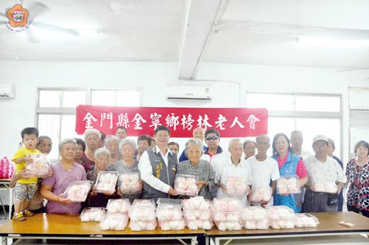 金寧鄉榜林老人真幸福!九九重陽節將屆,金寧鄉榜林老人會昨日舉辦重陽節健康促進暨聯誼活動,邀請七十歲以上的長輩共襄盛舉,本報社長吳世榮致贈老人會長者「幸福壽桃」,議員許玉昭與長者餐敘聯誼,藉此活動提倡敬老尊賢觀念,加強社區間的交流,帶動社區居民敦親睦鄰,並祝他們佳節快樂、身體健康、幸福久久。 為弘揚「敬老崇老」之精神,內政部訂定每年農曆九月九日為「重陽節」,又稱為「敬老節」,在這一天全國各地皆會辦理各式各樣的敬老活動,期盼喚起國人重視老人、尊敬老人的價值。 金寧鄉榜林老人會昨日舉辦重陽節健康促進暨聯誼活動,縣議員許玉昭除安排老人們進行簡易健康活動活絡筋骨,也進行衛教宣導及健康講座等豐富的活動內容,同時舉辦慶祝九九重陽敬老聯誼餐會,邀請老人會長者前來共度重陽。藉此活動提倡敬老尊賢觀念,加強社區間的交流,並帶動社區居民敦親睦鄰,建立祥和互助社會,增進家庭親子情感。 為表達對高齡老人的關懷及尊敬,本報社長吳世榮(生長於榜林)致贈老人會老人每人一盒「幸福壽桃」,以感恩他們長期以來對家鄉的支持與付出。 議員許玉昭表示,家有一老如有一寶,每一位長者都是家中、地方的寶貝,老人家他們年輕時辛苦的一步一腳印,為子女不求回報的付出,本報社長吳世榮致本於「回饋社會」的理念,發揮關懷社會、尊老敬老之傳統美德,特於老人會老人每人一盒「幸福壽桃」,希望表達一點關懷與賀節心意。她指出,吳社長每逢節慶總是「顧小也顧老」,除於重陽節致贈老人會長者「幸福壽桃」外,對於國家未來的主人翁「兒童」,也於兒童節送近百份兒童禮物給村內兒童賀節,喚起民眾對國內人口高齡化的重視,讓社會了解「家家有老人,人人都會老」。促進世代之間的關係融合,孩子經由與祖父母相處,進而了解老人及尊重其他老人。