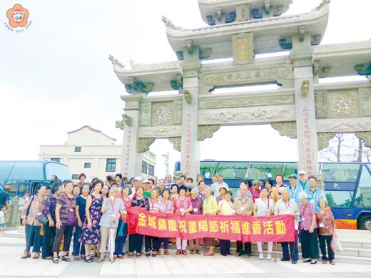 農曆的九月九日重陽節即將來臨,金城鎮公所向轄區內的長輩們祝賀佳節愉快,同時為了鼓勵長輩們多多出外踏青,利用前(六)日以及昨(七)日兩天,展開兩場次的「一○五年重陽敬老進香之旅」活動,由鎮公所同仁陪同長輩們,前往地區各重要宮廟進行進香朝拜,邀請年長的老人家們一起走出戶外,並藉由彼此聯誼,增進長輩之間的情誼。 今(一○五)年的重陽節進香活動,可謂是一波三折,活動原定要在九月二十七日、二十八日兩天舉行,但是卻又因為莫蘭蒂颱風以及梅姬颱風等一連兩個颱風的攪局,金城鎮公所考量長輩們的外出安全,便將舉行的日子延期至十月六日以及七日兩天來舉行。 今年的金城鎮重陽節進香之旅活動,是六日、七日兩天的早上八時起展開,共吸引了金城鎮轄區內各村里,年滿六十五歲以上的長者們報名參加,兩天的活動,共有七百三十人一起來共襄盛舉。 由於參與活動的長輩相當踴躍,主辦的金城鎮公所特別租用多部遊覽車,載著阿公阿嬤們前往金門地區的各宮廟及景點參訪。分別走訪了金沙田浦的泰山廟、沙美萬安堂、金湖鎮新頭伍德宮、金寧鄉西浦頭李光前廟、以及前往昇恆昌金湖廣場逛街,而中午時間則是在盈春閣餐廳內用餐。 金城鎮公所對於該項活動非常重視,兩天的活動,也於每輛遊覽車上派駐有鎮公所人員隨車,沿途也備有茶水,讓長輩們玩得安心。而報名參加的阿公阿嬤們的興奮之情溢於言表,沿途宮廟均相當虔誠捻香膜拜,此外途中各地知名農產如地瓜簽等,也是買得開心,對於這趟旅程都相當滿意。 另於兩天活動結束後,鎮公所還選在盈春閣餐廳進行聯誼聚餐,金城鎮長石兆瑉與縣府也特別派員前往向長輩們致意,並祝賀重陽佳節愉快,以祝賀長輩們長壽。