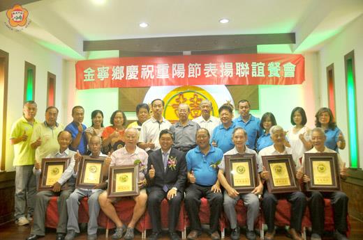 金寧鄉公所昨日舉行重陽節表揚高齡模範及尊老楷模活動,由鄉長陳成勇頒獎表揚高齡模範及尊老楷模共十二人,縣府秘書李文俊代表縣長陳福海向長輩們賀節,感謝長輩對金門默默貢獻付出,對獲獎的楷模也給予肯定道賀。 這項高齡模範及尊老楷模表揚活動,昨日晚間六時卅分假海洋餐廳舉行,由鄉長陳成勇主持,金寧鄉民代表會主席陳成泉、代表李正騰、辛愛華、楊水信、翁明惠、陳秀金、林金月及金寧鄉調解委員會主席李國平、古寧國小校長黃芸芸與各課室隊課長和各村長與獲獎人家屬等在場觀禮,場面洋溢溫馨感人的氣氛。 李文俊也代表陳縣長向長輩們賀節,感謝長輩對金門默默貢獻付出,對獲獎的楷模也給予肯定道賀。 鄉長陳成勇、主席陳成泉也頒發獎牌、獎品來表揚獲選的高齡模範,包括:古寧村:李森添、湖埔村:蔡世鵬、安美村:蔡西隆、盤山村:翁國泉、后盤村:王國遵、榜林村:陳鵬遠等六人,尊老楷模表揚計有古寧村:李成育、安美村:蔡秋年、后盤村:陳金燭、榜林村:許平昌、盤山村:李立才、湖埔村:蔡承族等六人。至於高齡模範古寧村:李炎城、安美村:莊西勢、湖埔村:楊清禮、榜林村:薛德成、盤山村:翁水千、后盤村:蔡清淼等六人代表金寧鄉於日前接受縣長陳福海頒獎表揚。