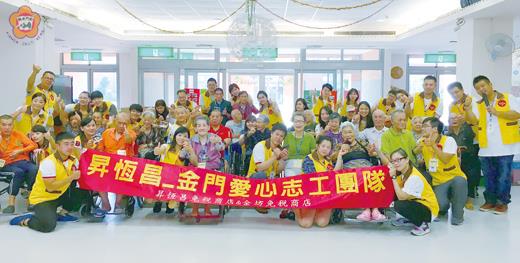重陽節前夕,昇恆昌愛心志工團隊來到松柏園,與20多位長者一起開心同樂。活動以健康操開場暖身,志工拿著毛巾為長者們擦擦手擦擦臉,並幫長者們按摩;「重溫舊夢」活動讓長者們暢談年輕時的興趣、夢想,最後的「大合唱」,長者們更是開心的打開金嗓,唱出那個年代一首首金曲老歌,讓松柏園洋溢著歌聲與歡笑。 昇恆昌長期深耕金門,每個月金門到處走透透,持續把歡樂、愛心與關懷帶給金門地區需要幫助的單位。在重陽節前夕,昇恆昌志工團隊前進松柏園,帶著滿滿的愛心和孝心,與20多位長者一起開心同樂歡慶即將到來的重陽節,長者們彷彿搭上時光機,重溫幸福時刻。 昇恆昌特別規劃愛心志工活動,並出動20位志工,前進金門松柏園,關懷平均80歲的長者。志工們非常用心地規劃每一個活動,包括健康操開場暖身,接下來的「溫暖傳遞」由志工拿著毛巾為長者們擦擦手擦擦臉,並透過按摩,把子女的關心與孝心傳遞給長者;「重溫舊夢」活動更讓長者們暢談年輕時的興趣、夢想,以及金門古洋樓圖案的涵義等,此時志工們像小朋友聽睡前故事一般,仔細聆聽長者們口中的金門故事;最後的壓軸「大合唱」,長者們更是開心的打開金嗓,唱出那個年代一首首金曲老歌,讓松柏園洋溢著歌聲與歡笑。