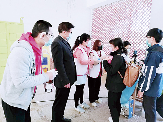 國立金門大學開學第2天,校長陳建民檢視學校各項防疫措施的執行狀況與師生配合情形,陳建民防疫工作不能有缺口,金大防疫多管齊下,因應新冠病毒所帶來的風險,未來也將持續調整防疫相關作為。 金門大學本月二日開學,學校啟動各項防疫措施,校園內設立12個體溫量測站,師生進入各棟大樓前必須通過體溫量測站,由戴著口罩的職員,為師生測額溫,同時取得當天體溫貼紙,一天只需測量一次,憑著貼紙可自由進出。 校長陳建民於開學第二天,在金大主任秘書蔡宗憲、學務長呂立鑫、教務長吳俊毅等一級主管陪同下,檢視學校防疫措施的執行狀況與師生配合情形。 陳建民指出,國內各大學為因應開學後新冠病毒疫情發展所帶來的威脅,皆採多項防疫配合措施,希冀隔絕校園內可能的各項感染風險。而為因應此波疫情之影響,金門大學也提出多項防疫作為,包含開始執行進出各棟大樓的體溫管理、線上即時課程、電梯等密閉空間加強清潔與消毒、教學空間課後消毒、餐廳以便當取代餐盤等方式。 陳建民表示,防疫工作不能有缺口,面對校園內來來往往的人流,配合中央疫情中心與教育部的指示做好相關防範工作是現階段的重點工作。他指出,自今年1月底開始,金大便根據疫情發展成立了防疫小組,並開始針對各項物資整備、調適措施、防疫作業流程、學生安心就學措施逐次進行規劃與落實執行。 陳建民指出,開學之後學生開始返校上課,而各項措施的施行目前也皆能依規劃內容據以執行,學校每天都會消毒教室座椅,各系辦公室也會提供消毒設備,學校在電梯消毒方面還是依照完整規範進行,電梯每天上午7時30分和下午1時30分消毒,按鈕貼有保護膜,隨時更換,電梯口並放置消毒水,方便師生進出消毒使用。 陳建民說,學生必須接受體溫量測和雙手消毒後才能進入教室上課外,學校鼓勵師生上下樓盡量走樓梯,既健身又可減少感染風險,學校師生配合狀況良好。為有效持續防疫,各項規劃工作的執行與調整也將按疫情之發展作動態調整,並持續宣導師生戴口罩、勤洗手、量體溫等基本防疫概念。而針對無法返回學校上課的中港澳學生,學校也採用線上遠距教學的方式,以維繫學生的學習能量。 金門大學為因應新冠肺炎疫情之影響,校方訂立相關規範,相關活動舉辦擬分為4個類別,包括一般活動、社團課程:可照常舉辦,但務必做好衛生防疫工作,如有必要者請佩戴口罩。超過100人以上的「室內」活動,建議延期舉辦或取消。100人以上的「室外」活動,可照常舉辦,但務必做好衛生防疫工作,如有必要者請佩戴口罩。至於有與外單位合作、跨校連結之活動,延期舉辦或取消。另外,校方也鼓勵學生出門前自主體溫管理,秉持生病不上課的原則;學生進入各棟大樓前皆需先量體溫,並取得當日的體溫貼紙(表示量測通過);來校上課學生也會實施點名並進行拍照,以做為需進行疫調時的資料。 金大表示,短期間進入校園各棟大樓會因為管制而略有不便,不過為了有效防疫,仍請大家多多配合,希望很快能度過此波疫情,恢復正常的日常作息。