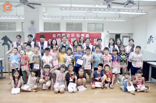 一項由縣府社會處主辦的「105年快樂『玩』英語—兒童育樂營」活動,本月一日在金門大學社工系B16韻律教室展開,社會處長甯國平主持始業式,鼓勵孩子從日常生活中體驗學習英語的樂趣,透過團康活動及手工藝等豐富課程內容,讓孩子自然而然的開口說、唱,不但要讓孩子玩得盡興,也要讓孩子把英語說得流利。 由金門縣政府指導,社會處轄屬青年愛金門志工隊結合金門大學應用英語系及社工系共同辦理的「105年快樂『玩』英語—兒童育樂營」活動,於10月1日、10月8日、10月15日、10月22日、10月29日、10月30日舉行,上課時間為上午9點至下午4點30分,並於一日舉行始業式,由社會處長甯國平主持,計有三十位2-3年級學童悠遊於精心打造的實境語言學習環境。 甯國平指出,這項「105年快樂『玩』英語—兒童育樂營」,由青年及學生志工策劃及結合自身專才,安排五週六次不同英語情境教學、團康活動及手工藝等豐富課程內容,用多元且活潑生動的教學方法,引領兒童在玩樂的過程中,快樂地學習英語。同時為讓兒童了解外國節慶的由來及習俗,將於最後一週規劃萬聖節化妝舞會,使學員們體驗異國節慶文化的差異,感受不同節慶的熱鬧氛圍及新奇。 活動由志工自行規劃、準備、籌辦,並邀請金門大學應用英語系學生採取共同合作方式,一起帶領小朋友進入英語世界。並安排每週設計一個活動主題進行教學,以快樂學習概念引導,利用各種「玩」的活動方式,讓小朋友蹦蹦跳跳進行學習。同時也搭配各式各樣團康活動,觸發小朋友學習英語的興趣及熱忱,快樂地大聲說「英語」。同時,為讓小朋友體驗國外如何度過萬聖節活動,將安排手工藝學習時間,讓小朋友自行製作邀請卡、服裝、道具等,並於最後一週時間,邀請家長一同參與由小朋友舉辦萬聖節舞會。 每週課程活動內容由志工陳惠娟(為金門大學應用英語系兼任教師) 擔任主題教學講師,並由青年志工協助管理及引導小朋友學習,每週主題教學如下:My new friend(結交新朋友)、I know ABCs(字母與生活)、Beautiful flowers(金門縣花與樹)、My family(我的家人)、My favorite food(數字與生活)、Halloween(萬聖節)。