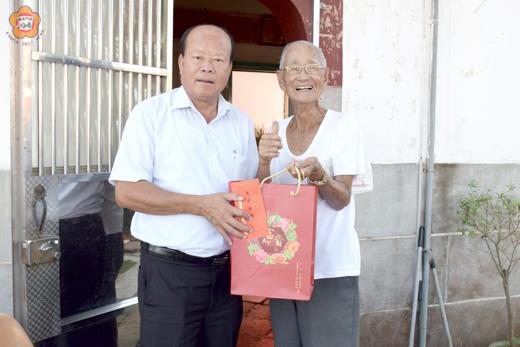 九九重陽節前夕,烈嶼鄉長洪成發向高齡長輩們賀節,帶來壽酒和祝壽禮金,祝福長輩們歡喜健康呷百二,老人家很開心接受敬老禮物。鄉公所昨日開始發放六十五歲以上老人重陽節敬老金酒禮盒,長者和家屬們感受到鄉公所的敬老心意。 鄉長洪成發在鄉公所社會課長吳玉華等人陪同下,了解各村村長協助鄉公所發送重陽節敬老金酒禮盒的作業情形,並慰問鄉內九十五歲以上長者。 鄉長洪成發表示,九九重陽節有著「久久」尊老、敬老的意義性,鄉公所很重視重陽節,除了贈送金酒禮盒、慰問高齡老人,也將於今(四)日辦理模範老人表揚和四色牌休閒牌藝活動,讓長者感受到政府的關懷。 洪成發探慰鄉內九十五歲高齡長輩,帶來壽酒和祝壽紅包賀節,祝福身體老康健。洪成發說,重陽節是屬於老人的節日,「九九同音久久」亦為祝福富貴、長長久久、身體健康之意。