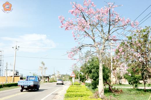 圖文/楊水詠 經過莫蘭蒂和梅姬颱風的先後肆虐,金門島多處的主次要道路行道樹受災損非常嚴重,昔日的綠意盎然景象不復存,眼前是滿目瘡痍!在感嘆颱風帶來的破壞威力,清除和復原不曾間斷;但,位於環島北路段有一株美人樹,風災過後努力綻放,粉紅色大型花掛滿樹冠,映襯著秋天的天空,展現出生命的旺盛毅力,十分的醒目耀眼和美麗! 秋天是美人樹花開的季節!它屬木棉科的落葉喬木,觀賞價值頗高,目前廣被利用為行道樹,花期每年的九月至十一月間,花緣皺摺盛開後略反捲,奼紫嫣紅,花團錦簇,十分的好看! 此外,美人樹與金門縣縣樹木棉同科,因樹幹造形狀似日式陶瓷酒瓶,因而有「酒瓶木棉」之稱。雖經過風災肆虐,仍在秋陽盛開綻放,展露妍麗的花姿,亮麗、耀目,實有丰姿萬千的美人之感!