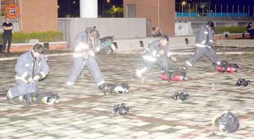 金門縣義消總隊將參加在新北市舉辦的第11屆全國義勇消防人員競技大賽,105年9月30日下午7時在金門縣立體育館後廣場舉辦集訓成果驗收活動,當日局長楊肅凱代表縣長除勉勵選手要展現平日訓練成果奪得冠軍佳績外,同時感謝所有義消同仁們在消防救災上的辛勞付出,縣民們才能無後顧之憂生活。 內政部消防署辦理第11屆全國義勇消防人員競技大賽,將於10月29日在新北市板橋第一運動場舉行,金門縣消防局召集金門縣義勇消防總隊所屬金城、金湖、金沙、金寧及烈嶼5個分隊甄選優秀義消人員組隊代表參加,參加項目計有基本繩結、負重救生、著裝競賽及小幫浦射水比賽等4項。這4組代表參賽義消人員,於今年5月份起即於各地展開分區集訓工作,這些參賽義消弟兄為爭取金門縣之最高榮譽,平日犧牲個人的工作及休閒時間,均利用下午、晚上以及假日時間,不畏辛勞參加各項集訓及訓練,只為能在全國競技大賽中獲得佳績。