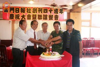 三十一年前,本報首度移師到烈嶼鄉舉辦慶祝金門日報創刊九週年社慶,昨日再度移地到烈嶼鄉慶祝四十週年社慶,本報社長顏恩威及多位退休老報人和資深員工以親身的見證和感受說:烈嶼鄉的進步是不可同日而語。包括縣長李炷烽、烈嶼鄉長林金量、旅長栗正傑、議員洪成發、洪允典、洪麗萍等來賓也一起與本報全體員工共聚一堂來為報社生日慶生,分享生日的喜悅氣氛。 李縣長說,小金門是離島中的離島,需要更多的關心與資源,他很高興本報能安排到小金門參訪,以實際行動來關注烈嶼鄉,也期望在大家繼續的努力下,讓烈嶼鄉一天比一天更進步發達。 本報慶祝創刊四十週年社慶,除了陸續舉辦員工象棋比賽、三分球投籃比賽、撞球比賽、歌唱比賽,活動的重頭戲,昨日也特別移地到烈嶼鄉進行參訪和舉辦聯誼餐會,表揚資深員工。昨日上午八時三十分,本報社長顏恩威帶領一百多位員工和眷屬搭船展開烈嶼之旅,有的員工還真是第一次到烈嶼鄉,充滿了好奇。 烈嶼鄉長林金量以主人的身份,熱忱的親自接待本報員工,並安排觀賞「戀戀烈嶼」的多媒體影片,引領大家認識離島中的離島|小金門。林鄉長更是充當「導遊」,詳細介紹烈嶼鄉的歷史、文化資產、戰爭遺跡、自然生態景觀和美麗風貌,以及鄉土名產,他希望透由媒體的傳播來多多行銷烈嶼的美與好。 林金量說,烈嶼鄉除了有獨特的景觀面貌,還有濃濃的鄉情味,他說,在烈嶼鄉找不到「紅綠燈」的交通號誌,並不是烈嶼車輛稀少,而是鄉民自發性的守法,這是長久的純樸守法民風、和宗教以及教育的教化結果,讓鄉民都十分守法。其次,小金門的整潔乾淨,相信會讓大家印象深刻,他感謝縣政府投注許多經費來建設地方,改善鄉民的生活環境,以及同仁們致力維護環境的努力。 林金量也介紹鄉公所團隊幹部,他說,各課的主管都要定期開業務會議,也都能獨當一面處理執行業務,該棟綜合行政大樓,也提供有地政、戶政、監理、稅捐以及榮民服務,也有因應小三通的往來頻繁,提供鄉民申辦出入境證的送件服務,來服務鄉民。 本報社長顏恩威感謝鄉公所熱忱的招待,他說,鄉長林金量投注鄉政工作的用心與努力,充滿了自信心,肯定了別人,也是肯定自己,也獲得鄉民的信賴,這一次鄉長選舉,在小金門人才濟濟的情況下,依然是「同額競選」,就是對他工作上最大的肯定與支持。 顏恩威也述及三十一年前,本報首度移師到烈嶼鄉舉辦慶祝金門日報創刊九週年社慶,當年海上交通工具十分不方便,島上要坐阿兵哥的大卡車,相對於今日海、陸交通的便利和地方上的建設與發展,是不可同日而語。他說,這幾年來,烈嶼鄉進步很快,這也是本報這一次特別移地到烈嶼鄉舉辦社慶,並進行參訪,來感受烈嶼鄉的不一樣,也期望金門日報未來也很不一樣。 在鄉公所秘書呂合成、課長盧美紅、公關主任陳延福的引領下,本報員工參訪了多處景點,也受到烈嶼旅長栗正傑、政戰主任李開順的接待,感受到烈嶼軍民一家的情誼。 午間的聯誼餐會,包括縣長李炷烽、烈嶼鄉長林金量、旅長栗正傑、議員洪成發、洪允典、洪麗萍、鄉代表方水萬、烈中校長吳啟騰、卓環校長林水綠、上岐校長王先勝、以及戶政所主任陳用國和鄉公所幹部等來賓與本報員工共聚一堂來為報社生日慶生,洋溢著喜悅的氣氛。 來賓們也應邀頒獎表揚服務年資滿四十年資深優秀員工林勤芳;滿三十五年資深優秀員工李松水;滿三十年資深優秀員工鄭碧伶、許金滄;滿二十五年資深優秀員工陳容為、許績鴻、吳天資、陳詩平、蕭宗宇、王根圍、蔡清琦、陳寶玉;滿二十年資深優秀員工陳曉琳、陳麗娜。也頒獎獎勵各項競賽優勝員工。 顏恩威表示,本報創刊迄今四十載歲月,若連同前身正氣中華報,前後已逾半世紀,也是因為有正氣中華報的一路走來,才有金門日報的誕生,生日也是感恩的日子,他勉勵報社員工們要發揚這一份「正氣」精神,大家共同為「報社」加油。他也鼓勵員工們不要妄自菲薄,金門日報還是很受外界的重視,他並以馬來西亞最大的華人報紙─聯合日報,發行量有六十萬份,副社長也正是已故僑領林德甫的兒子,該社總編輯曾來信說明該報有意願開闢報導金門鄉訊的一個版面,希望本報能透由網路等方式提供家鄉訊息,如果能促成,將是一大突破;此外,包括大陸的廈門日報等媒體也一直希望與本報加強雙方的交流,把本報看的比台灣媒體還來的重要,顏恩威鼓勵員工們不要看輕自己,繼續做好工作本份,扮演好政府與民間溝通的橋樑,以及反映民意、為民喉舌的角色與任務。簡單隆重的表揚活動後,在全體員工為報社四十歲生日合唱「生日快樂」歌聲中,社長顏恩威與來賓共同合切生日蛋糕,現場氣氛相當溫馨。