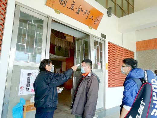 因應新冠肺炎疫情,多數大學紛紛延到3月2日開學,金門大學昨日開學,學校啟動各項防疫措施,校園內設立12個體溫量測站,師生進入各棟大樓前必須量測體溫與消毒,讓師生能安全、安心地上課。 國立金門大學昨(二)日開學,金大在各大樓和宿舍設立12個體溫量測站,師生進入各棟大樓前必須通過體溫量測站,由戴著口罩的職員,為師生測額溫,同時取得當天體溫貼紙,一天只需測量一次,憑著貼紙可自由進出。 金大校長陳建民指出,開學後學校啟動各項防疫措施,並持續衛教宣導,包含戴口罩、清潔消毒、室內通風、勤洗手等防疫作為;各班級每日皆需進行線上健康通報,以即時掌握學生身體健康狀況;每棟宿舍各設置3間防疫寢室,以備不時之需。所有訪客、廠商入校也需進行體溫量測;健身房、游泳池等密閉運動空間將暫時關閉;各辦公處室洽公則需戴口罩進入。 金大開學之後的防疫措施,包括: 1、鼓勵學生出門前自主體溫管理,秉持生病不上課的原則。 2、校園內設立12個體溫量測站,進入各棟大樓前皆需先量體溫,並取得當日的體溫貼紙(表示量測通過)。 3、來校上課學生也會實施點名並進行拍照,以做為需進行疫調時的資料。 4、持續衛教宣導,包含戴口罩、清潔消毒、室內通風、勤洗手等防疫作為。 5、大型室內活動延期或取消,30人以上聚會時則需事先申請,入場前進行體溫量測管理,手部並噴灑酒精消毒,並以通風的空間為主要舉辦場所,座位之間並保持適當間隔距離。 6、各班級每日皆需進行線上健康通報,以即時掌握學生身體健康狀況。 7、每棟宿舍各設置3間防疫寢室,以備不時之需。 8、所有訪客、廠商入校也需進行體溫量測。 9、健身房、游泳池等密閉運動空間將暫時關閉。 10、各辦公處室洽公則需戴口罩進入。 11、其餘疫情通報與處理流程則按中央疫情中心的指示與流程辦理。 金門大學為因應新冠肺炎疫情之影響,校方訂立相關規範,相關活動舉辦擬分為4個類別,包括一般活動、社團課程:可照常舉辦,但務必做好衛生防疫工作,如有必要者請攜帶口罩。超過100人以上的「室內」活動,建議延期舉辦或取消。100人以上的「室外」活動,可照常舉辦,但務必做好衛生防疫工作,如有必要者請攜帶口罩。至於有與外單位合作、跨校連結之活動,延期舉辦或取消。 另外,校方也鼓勵學生出門前自主體溫管理,秉持生病不上課的原則;學生進入各棟大樓前皆需先量體溫,並取得當日的體溫貼紙(表示量測通過);來校上課學生也會實施點名並進行拍照,以做為需進行疫調時的資料。
