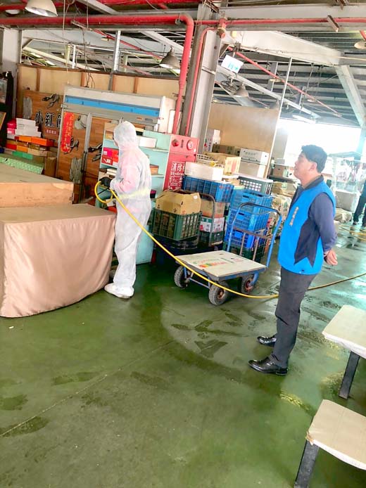 昨日上午本縣災害應變中心為因應國內新冠肺炎疫情持續發展延燒,由縣長楊鎮浯親自召開「防疫一級開設」視訊會議,金湖鎮公所配合疫情應變中心一級開設。金湖鎮長陳文顧為積極備戰防疫,特別召開金湖鎮防疫工作協調會議,會議中表示新冠肺炎疫情對臺灣和全球都帶來很大的影響,面對不斷蔓延擴大的疫情,民眾都要有高度的警覺性,做好自我防疫工作。 陳鎮長昨日下午偕同環保課長及清潔隊同仁針對轄內公共場所空間加強消毒防疫工作,尤其轄區重點場域,如陳景蘭洋樓及周邊坑道、公廁周邊、土地公廟、市港路公廁、舊菜市場周邊、新菜市場周邊、計程車招呼站周邊、公車站周邊、新市公園、護國寺周邊、羅神父公園周邊、中正公園老人中心及公廁周邊、料羅灣公園公廁等公眾出入場所加強消毒工作,希望藉由落實防疫工作無死角,讓民眾生活好心安。