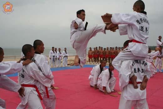 「航特部兩棲營國防知性之旅」昨揭開神秘面紗開放營區,進行戰力展示、及戰技表演,計有千餘名軍民前往觀賞,兩棲官兵們在活動中演出精采的陸上搏擊、莒拳道擊破以及海上操舟,展現認真、沈穩臨危不亂的精神,獲得現場民眾的熱烈掌聲,而另也透過園遊會方式,拉近軍民距離,現場軍民一家親,非常熱鬧。 金防部為展現國軍捍衛國家的決心與部隊勤訓苦練的成果,昨假料羅營區舉行「航特部兩棲營國防知性之旅」戰力展示活動,內容除了有「岸際格鬥」、「莒拳擊破表演」、「海上操舟」等另也安排園遊會,與民同樂,拉近彼此的距離;此外,亦有懇親會活動,計有百餘名官兵家屬抵金參加,他們對於兩棲官兵的演出給予高度的肯定,並期望不久的將來能再度看到官兵們的精采表演。 在昨日的「航特部兩棲營國防知性之旅」中,金防部司令吳達澎、縣長李炷烽、前總政戰局執行官陳興國、地區官兵及眷屬、民眾等千餘人前往參加,而抵金訪問的政治大學社會科學院院長高永光及行政管理碩士學員二十餘人也參與盛會,見證兩棲官兵的訓練成果。 吳達澎表示,兩棲營是一個小而美的單位,官兵們都驍勇善戰,這次開放營區展示戰力,期望民眾能透過活動,走入營區後,了解國防、接觸國防,進而支持國防建設,齊心維護中華民國的生存與發展。 李炷烽表示,國軍是確保國家安全的保證,感佩官兵平日保家衛國的辛勞。他也說,針對行政院長謝長廷日前在立法院答覆縣籍立委吳成典質詢時表示,他主張陸資來台先從金門做起一事表示,這是金門發展的喜訊,非常樂觀其成。 李炷烽也說,未來金門在兩岸關係發展中扮演更積極的角色,十月三日地區啟動試辦人民幣現鈔兌換業務時,他即提出金門試辦引進陸資的構想,做為台灣本島實施的參考,不到二十天行政院即有明確宣示,符合地方的期待。 該活動在簡單的開訓儀式後隆重登場,由兩棲官兵依序演出「兩棲戰技蛙人操」、岸際格鬥、莒拳道擊破表演、海上操舟等內容,其中蛙人操包括:全跳、邊彎、掌上壓、背部運動、仰臥打水、手腳坐起、仰臥挺身、跪臥挺腹、腹部運動、強背等精采動作,展現官兵們強健的體格與訓練的成效,現場歡呼聲不斷。 另一項岸際格鬥,包括:基本奪刀、奪槍術及一對一、一對二、一對三、二對六格鬥,壓制、擒拿、近身格鬥等項目。 金防部指出,岸際格鬥中奪刀、奪槍術的養成,首先要培養勇敢進取之決心,以空手奪白刃之姿態,勇敢果決,即使處於極不利之狀態下,仍能迅速反制敵人,達成任務,並確保自身安全。 莒拳道擊破表演,包括防身對練、兩方對練、四方連續擊破、飛越擊破等,其中,防身對練為訓練跆拳道基本動作運用,在互相對練過程中,充分發揮相關跆拳道技巧,進而培養學者勇猛頑強之精神。另外,兩方對練:對練目的為培養學者一對二或一對多之實戰技巧,漸而培養膽識及信心,即使在面對多人實戰時,仍能充分靈活發揮跆拳道各項技巧。 而表演中,擔任莒拳道總領隊為何月龍,他習練莒拳道已十餘年,目前認證段數為莒拳道三段,擅長旋踢、壓制等足技,並經常代表兩棲營參加各項跆拳道比賽,獲獎無數。他表示,擊破講究精、氣、神一體,以堅定之意志、堅強之信心一氣呵成,以完美之技巧擊碎各掌板、瓦片;在近身格鬥時更能迅速給於敵人致命性的一擊;四方連續擊破,講究一氣呵成連續擊破四面掌板;飛越擊破,需要騰空飛越地面障礙物,有其難度。 最後一項表演為海上操舟,由六小艇與一大艇組成,表演分為一縱隊、兩縱隊、雙叉等,在完成海上操舟演出後,四名蛙人全副武裝,身著潛水衣、潛水手套、防滑鞋,並配戴面鏡、呼吸管、重帶、蛙鞋、潛水刀、浮力控制裝置、調節器等自海中游回岸上,展現完美的體能。 而當四名全副武裝的蛙人,上岸後步行至台前時受到民眾的歡迎,由於鮮少看到,因此也紛紛拿出相機猛拍照留念,而這也是表演的最尾聲,有不少民眾納悶,原本安排有爆破為何演出時卻未見到,覺得十分可惜,也有些失落。 對此,金防部司令吳達澎表示,由於現場有不少民眾前來參觀,在安全以及低潮位等考量下,因而取消爆破演出。 整個活動在動態的表演外,活動中也開放營區進行靜態戰力展示,包括飛龍艇、成功艇及蛙人海陸作戰特殊裝備,讓許多首度走入營區的民眾,猛按快門,爭相與蛙人合照,用照片留住這難得的一刻。 (相關新聞詳見第三版)