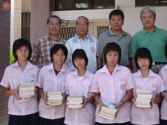 為響應教育部焦點三百兒童閱讀計畫,知識關懷協會贈送金城國中五大箱書籍共三百三十四冊,昨日並由福建省政府委員陳滄江(後排右一)與金城鎮鎮長蔡輝詩(後排右二)代表贈送,他們希望以實際的捐書行動充實該校圖書館資源,讓學子更了解閱讀的好處以及知識的重要性,以提升閱讀素養及語文能力。校長李再杭與教務主任許維民也對於這項贈書行動表示讚許與感謝,認為可以豐富孩子的學習領域。