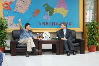 復華銀行新任經理鄭高特等人,昨日前往金門縣政府拜會縣長李炷烽。鄭高特就民營銀行希望爭取代理和公部門資金業務往來服務,提出訴求。縣長李炷烽認為,縣政府為看緊人民荷包、追求最大利益,與公民營銀行業務往來,絕對是哪家銀行給的條件最好和保障佳為前提。而只要不違背國家法律,與銀行的交易該開放就會開放。 鄭高特是於昨日上午前往縣政府拜會,縣政府財政局長林德恭並在場坐陪說明。鄭高特指出,一家新銀行設立要讓民眾接受也需要一段時間,復華銀行目前在各地有五十八家分行,未來希望達成一百家分行設立的目標。