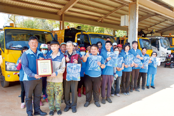 體恤環保清潔工作辛苦繁重,危險性高,地區新敬業機車行董事長楊肅謙、經理楊駿瑋特別贈送金寧鄉公所清潔隊總共300件工作服,以加強團隊敬業精神及舒適的工作裝備,金寧鄉長楊忠俊特別表達感謝,他也相信在大家的支持下,金寧鄉的環保工作一定可以做得愈來愈好,受到鄉民的認可與贊同。 新敬業機車行董事長楊肅謙平日熱心公益、樂善好施,他對於清潔隊平日辛勞執行環境衛生工作,為了鄉民們的環境整潔付出及提供生活便利的精神,表達由衷的謝意,並特別前往金寧鄉回收場將300件反光條的工作服贈予辛苦的清潔隊員,並為他們加油打氣,希望能盡一點心力,提供清潔隊員在執勤時能更安全舒適,受到金寧鄉長楊忠俊、農觀課長張寶仁(兼代環保課長)的歡迎,清潔隊員們也對於楊肅謙父子的善心之舉,報予熱烈的掌聲。 鄉長楊忠俊感謝楊肅謙董事長熱心公益的善舉,也特別回贈感謝狀表達謝忱,他表示,清潔隊工作複雜而多元,所以如何提高隊員們在職場上的勞工安全也是鄉公所的工作重點之一,他也特別感謝董事長楊肅謙的義舉,善行可風,讓每位隊員有兩套工作服可以替換,他更相信在大家的支持下,金寧鄉的環保工作一定可以做得愈來愈好,愈來愈受到鄉民的認可與贊同。 楊肅謙表示,清潔隊員工作非常辛苦,天還沒亮就要開始在街頭巷尾打掃環境,忍受四季天氣炎熱和酷寒,到各社區進行環境維護,割雜草、清水溝、消毒等工作,晚上還要執行垃圾清運工作,可以說是全天候的服務。為了感謝隊員們的辛勞,特別致贈亮色系具備反光條效果的工作服裝,期盼能提高工作職場的安全及方便性,讓大家在工作時更加的舒適安心有效率。
