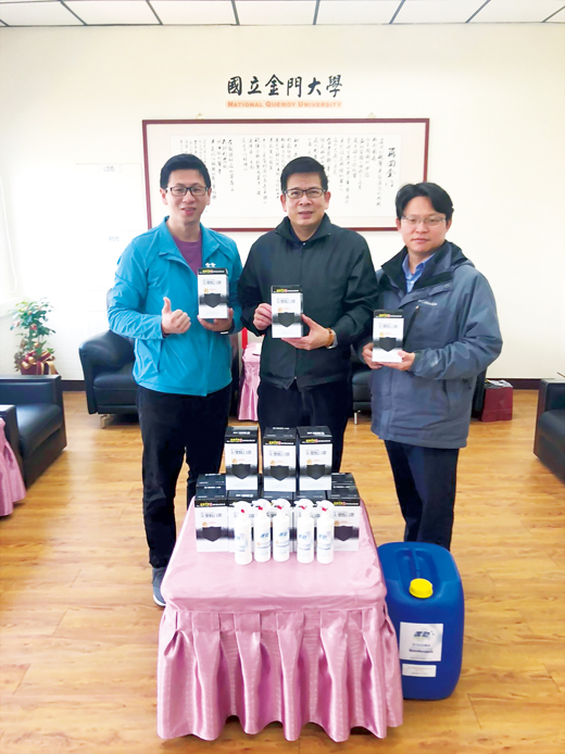 三月二日是大學開學日,近日已有學子陸續返金做好開學準備。而為防範新型冠狀病毒疫情可能帶來的影響,繼日前金門縣小英之友會會長蔡其雍拋磚引玉捐贈口罩1,000個供金大校方統籌使用,昨(27日)該會秘書長王中聖也捐贈口罩800個與抗菌液一桶,提供學校作為防疫與消毒所用。金大陳建民校長對王秘書長與該會的善行之舉再次表達感謝之意,也將持續做好防疫物資整備,以利開學後的各項所需。 由於新型冠狀病毒疫情在全球仍持續蔓延,而學校是人員流動的場合,王中聖希望金大學弟妹在金門都能健康平安的進行學習。他表示,此次以校友身分回校捐贈原物料及製造商均來自於台灣的國產口罩800份及次氯酸消毒液一批,主要是考量母校開學在即,大批學弟妹將返回學校。加上學校平時即有許多訪客外賓,應會有許多臨時性的需求,因此特別準備一點心意回饋母校,同時王中聖也轉達來自蔡總統對於金門大學師生們的關心。 陳建民表示,此次新型冠狀病毒肺炎疫情對臺灣和全球都帶來很大的影響,全臺各級學校都延後開學上課,而面對不斷蔓延擴大的疫情,全校師生都要有高度的警覺性。他說,為防範新型冠狀病毒,金大已召開數次防疫與工作協調會議,針對環境整潔、安心就學等措施進行妥善規劃。而全臺各大學陸續開學,做好防疫準備工作刻不容緩。面對此波疫情,金大針對各項清潔消毒、人流管理、體溫量測等工作措施持續辦理。金大表示,隨著疫情變化未來入校人員的管制措施或許會稍加帶來不便,但防疫工作需要大家的配合,以順利度過此波疫情影響,盡快恢復常規生活作息。 金大學務長呂立鑫則表示,目前學校不斷的充實各項防疫所需物資,並於開學前完成學生宿舍及校園的消毒工作,各大樓出入口也備妥酒精或次氯酸水噴瓶,另外也在校園公佈欄、網路和社群媒體群組進行各項防疫衛教宣導,尤其要勤洗手,在「出門前、下車後、進校門後、進教室前、吃東西前、上廁所後」等六個時機務必確實洗手。呂立鑫並提到,還有一些衛生、消毒、體溫量測用品等防疫物資,除政府發放數量有限外,市面上購買也不容易,歡迎各界善心人士捐贈校園防疫物資,協助學校共同營造健康的求學環境。