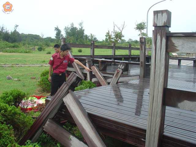 「龍王」侵襲金門,並未帶來重大災情,僅有折損部份樹木,不過,后湖海濱休憩區的觀景台木欄杆卻遭受人為的蓄意破壞,金寧消防分隊警消在巡邏該海域時發現後已拍照存證,提供警方來偵辦。 為防範「龍王」颱風帶來的災情,金寧消防分隊警消在颱風天加強巡邏轄區內海域,勸導出海作業的漁民趕快回家避颱風,以免發生意外。 金寧消防分隊警消巡邏到后湖海域時,發現供遊客休憩區的觀景台木欄杆有三排折斷,連接頭的螺絲都拔起,其旁還有酒瓶,警消研判是遭受人為的蓄意破壞,斥責惡意破壞公物者,當場拍照存證,將提供警方來偵辦。