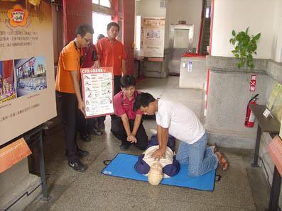 莒光樓是地區著名觀光景點,也是中外遊客必定造訪之處,金城消防分隊昨日下午特別前往莒光樓,指導服務人員CPR急救技術及防火、防溺訓練,以強化救生技能,保障民眾安全,並推廣急救教育。 金城消防分隊表示,莒光樓為來金中外遊客必定造訪之地,也是地區鄉親休閒散步的主要場所,為保障民眾安全,進行急救教育的推廣,昨日下午特別前往莒光樓觀光景點,指導服務人員CPR急救技術及防火、防溺訓練,以強化救生技能,希望經訓練後,民眾一旦遇有狀況,即能學以致用,採行必要之處置,以降低傷害的程度。 昨日宣導及訓練內容包括:消防常識、CPR急救技術、消防設備操作、危險物品及瓦斯安全宣導等課程,現場服務人員都非常認真的學習。金城消防分隊也舉阿里山小火車翻覆事件中的急救案例,宣導急救技能與教育的重要性。該事件中,因有位吳女士受過急救教育,在現場協助並指導急救傷患,搶救許多人的性命,贏得國人的敬重,因此,該隊呼籲民眾重視急救技術,一旦發現旅客身體發生異樣,即能派上用場,在救護人員到達之前,為患者實施適當處置,以增加患者的存活率,該隊也希望這項心肺復甦術能成為全民運動,大家都能學會這項救命的技術,不僅幫助自己也可以幫助他人。