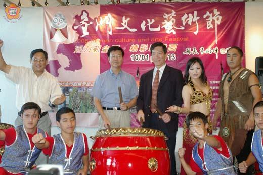 「2005金門文化藝術節」將於下(十)月一日起至十一月十三日在金熱烈展開。縣長李炷烽昨日率員赴台召開記者會,推介金門文化藝術之美,並誠邀媒體先進及國人一同來參與金門文化的蛻變,喚起台省民眾及十月份歸國華僑對金門的記憶與情感,更希望藉『2005金門文化藝術節』吸引觀光人潮。而行政院文化建設委員會副主委吳錦發等人也到現場致詞,為「金門文化藝術節」活動加油打氣。 昨日下午二時於文建會一樓藝文空間舉辦「活力新金門,藝文新樂園」|2005金門文化藝術節全國記者會,現場安排活動的精華演出及別開生面的隆重開幕儀式,包括卡蒂西中東肚皮舞、南方太陽拉丁爵士樂團、廷威醒獅劇團的精華演出,在場記者無不驚豔,爭相捕捉精彩畫面。與會媒體非常踴躍,縣長李炷烽並接受民視電視台訪問,精采片段並在昨日民視的晚間新聞播出。 縣長李炷烽指出,金門擁有一千六百多年的歷史,這項珍貴的文化資源,極具深化發展的潛力,延續去年十月所舉辦的「金門文化藝術節」,「2005金門文化藝術節」將於今年十月一日起至十一月十三日熱烈舉行,在金門各鄉鎮,每週陸續推出多項文化藝術表演活動,將金門的文化、風土民情呈現於大家的面前。 他說,此次文化藝術節活動將把藝術創作空間擴大伸入到全金門島嶼,包括烈嶼島也將納入本次活動的一環,以呼應本次文化藝術節的主軸精神,將藝術生活化,而生活更將是藝術的充分展現,拉近大眾對藝文感知的距離,也讓藝術的體驗從基礎教育開始潛移默化在大眾的心中。 李縣長肯定文化局李錫隆局長對金門文化的努力成果,並對現場媒體表示,金門是全國出版書籍最多的縣市,在全國各縣市出版書籍數量排名第一,足為全國各縣市的典範。 行政院文化建設委員會吳錦發副主委亦到現場致詞。另外,楊宣勤處長亦蒞臨記者會現場,為「金門文化藝術節」活動加油打氣,並將於十月一日到金門參加開幕式。 縣府文化局指出,今年『2005金門文化藝術節』的活動,開幕式將於明(十月一)日傍晚六時在莒光樓前廣場舉行,並於十月二日、八日、九日、十日、十五日、十六日、二十一日、二十二日、二十三日、二十九日、三十日、十一月五日及六日,陸續在金沙國小、社福館、莒光樓、慈湖三角堡、北鎮廟口、護國寺、南門天后宮、金沙戲院、烈嶼鄉靈忠廟、金湖成功海濱公園、新市里籃球場、總兵署等地演出。將於十一月六日晚間在文化局舉行閉幕式。 文化局表示,活動期間除了金門本土許多藝術隊伍參與外,並安排有廷威醒獅劇團、花式調酒、碉堡詩歌、澳洲樂團、漢霖說唱、天燈施放、互動布袋戲演出、玻利維亞印加樂團、鋸琴表演、街舞舞團、搖滾樂團、印度舞蹈、地中海民謠樂團、中東手鼓與肚皮舞、南方太陽拉丁樂團、川劇變臉等等:::預計將會有超過二十餘種中外不同的表演團體熱情參與演出,歡迎大家共襄盛舉。 「2005金門文化藝術節」將喚起台灣民眾及十月份歸國華僑對金門的記憶與情感,凝聚金門人對鄉土文化及人文藝術的未來發展,將以提昇美學藝術風尚塑造金門文化觀光形象並推向國際化為宗旨。 本次文化藝術節別具心裁的是在活動期間將運用活動舞台舉辦『金門文化藝術大使』的選拔活動。各項豐盛的活動內容精彩可期,將帶領金門文化邁向更高的里程碑,主辦單位誠摯邀請各媒體先進一同來參與金門文化的蛻變,更希望藉『2005金門文化藝術節』吸引觀光人潮、帶動活絡金門經濟之外,更一同參與建設|文化新金門。