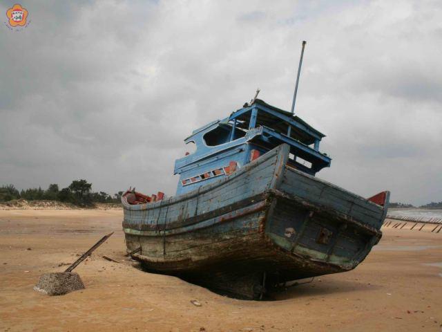 超大型海漂垃圾? 山西海邊的沙灘,幾乎已經變成垃圾場,髒亂不堪。其中包括一艘廢棄的大陸船。船身長度約有二十幾步。 這艘船不知道是怎麼漂來的。據三山里里長曾紀雄表示,它出現在海邊已經兩、三天。 這艘船的船腹被軌條砦插入。它幫忙印證了過去這些軌條砦真的有阻卻的效果。不過,來往船隻還真得小心留意,免得好船變成破船。