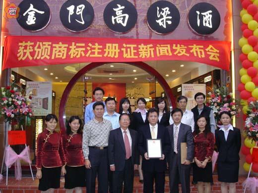 金門高粱酒取得中國註冊商標,副縣長楊忠全前(廿一)日在北京領取「金門高粱酒」註冊商標,昨日並假金酒公司廈門專賣店召開記者會,副縣長楊忠全向廈門消費者公佈金門高粱酒取得註冊商標的訊息,未來金門高粱酒全面行銷中國大陸市場,期望在工商管理單位的協助下進行有效的打假行動,以確保消費者的權益。 「金門高粱酒」廿一日獲得中國大陸工商行政管理總局商標局准予註冊,並頒授商標註冊證取得註冊商標後,昨日下午四時副縣長楊忠全、縣府財政局局長林德恭、交通旅遊局長林振查、金酒公司總經理王毅民等假金酒公司廈門專賣店與廈門媒體記者召開記者會,宣示「金門高粱酒」完成商標註冊依法在中國大陸獲得商標專用權保護,未來中國有關單位執行取締金門高粱酒仿冒品,將有所依據,對於金門高粱酒權益是一大保障。 副縣長楊忠全向廈門媒體敘述金門高粱酒商標註冊歷程,並接受媒體發問時指出,金酒公司爭取「金門高粱酒」在中國大陸註冊商標,但中國商標法於西元一九九八年修法,將「縣市以上地域名稱」排除在產品商標的許可範圍之外,為了突破這項「地名」的限制,二零零二年三月間李炷烽偕同立委吳成典前往北京斡旋,才讓註冊案出現轉機,不過,後來公告時,遭廠商提出異議受阻。 「金門高粱酒」申請在中國商標註冊,原先預定二零零四年八月二十一日取得商標註冊權,但是當年八月十六日遭到天津食品進出口公司、八月二十日再遭金門大順酒廠提出異議,以致計劃受阻,六項商標只取得三項,其中,最主要商標的「金門高粱酒」,受阻迄今才獲准。 金酒公司去年一年營業額創造九十億元新高,金酒公司總經理王毅民表示,台灣白酒市場已逐漸飽和,金酒開拓中國市場為必然的道路,金門高粱酒于2004年正式進駐大陸,在廈門設立金門酒廠(廈門)貿易有限公司,該公司為金門酒廠全資子公司,並於福建廈門、福州、泉州各開立一家專賣店;未來將繼續朝上海、北京等大都會挺進,目前正在中國大陸各地徵求省市經銷代理商,逐步打開市場,再創營運新記錄,讓大陸各地人民都能分享到醇正清香的︻金門高粱酒︼。