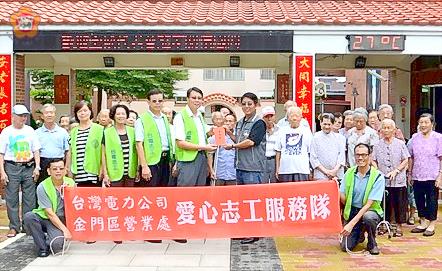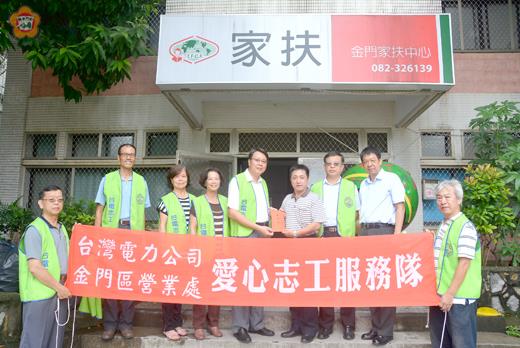 秋節前夕,台電金門區營業處處長王仁炳慰問地區弱勢團體和低收入戶民眾,送出新台幣三十一萬多元的慰問金,以實際作為關懷縣民,表達台電公司的一份關懷和賀節心意。 台電金門區營業處105年度愛心活動,由金門區處處長王仁炳帶領總務課人員,展開秋節前的關懷慰問。王仁炳先前往金門家扶中心送關懷,受到家扶中心主任李桂平、扶幼主委李根遠的歡迎。 王仁炳一行人也續慰問大同之家、縣身心障礙福利協進會、縣身心障礙者家長協會、福田家園、晨光教養家園等五處弱勢公益團體,贈送團體秋節慰問金賀節。王仁炳也探慰縣內家計困境之低收入戶二十四戶,以滿滿的祝福和關懷,祝賀佳節。 王仁炳指出,台電公司睦鄰關懷工作係年度持續性的性質,「急難救助」亦是工作的重點,秋節之際,代表總公司關心金門地區弱勢團體及低收入戶,共慰問六處弱勢公益團體,各贈送二萬元團體慰問金;二十四位弱勢民眾,每戶八千元,合計三十一萬二千元,盡台電關懷社會的一份責任。