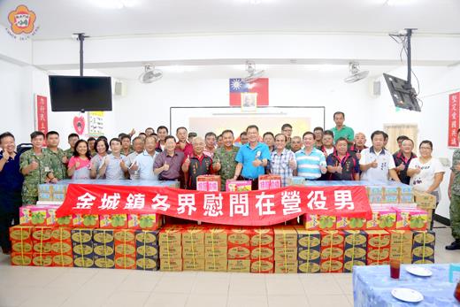 中秋節即將到來,金城鎮長石兆瑉昨日率同金城各界組成的勞軍團前抵金防部混合砲兵營探慰在籍服役子弟,同時也致贈高粱酒、飲料、泡麵等提前向官兵們祝賀中秋佳節快樂。 由金城各界組成秋節慰勞團一行二十多人,由鎮長石兆瑉率同金城鎮民代表會副主席郭永隆、代表林金英、李錫瑜、東門里長蔡祥坤、北門里長許績才、賢庵里長盧志嶢、金水里長黃國民、古城國小校長楊成業、賢庵國小校長楊肅健、軍友社金門聯絡組專員盧清土、金城鎮後備軍人輔導中心、金城青溪婦聯會幹部,鎮公所各課課長等人,於昨日下午前往位於官裡的金防部混砲營營區,提前向平日勞苦功高的官兵弟兄祝賀中秋佳節快樂。 營長徐宗澤率同多位官兵弟兄在場熱烈歡迎,對於金防部混砲營長期協助金城鎮的防颱整備工作,鎮長石兆瑉表示由衷的感謝,他並指出,金城鎮與金防部混砲營一直以來保持良好的軍民關係,每逢颱風期間混砲營官兵弟兄協助金城鎮防颱整備工作,平時也經常參與鎮公所舉辦的環保活動,協助整頓環境,感謝官兵們犧牲假期戍守前線,並提前向官兵弟兄祝賀佳節快樂。此外,北門社區為感謝混砲營平時時常協助支援社區的多項活動,昨日下午,亦由北門社區發展協會理事長陳介尊、北鎮廟管理委員會主任委員傅啟澤、常務監事顏達仁等人致贈泡麵、飲料等食品,慰勞混砲營官兵們,表達感謝之意。 記者陳冠霖/金湖報導 中秋節將至,金湖鎮公所12日下午由金湖鎮長蔡西湖和鎮代會主席呂瑞泰帶隊,陸續走訪陸軍金門地區支援營、岸巡隊、金湖分局、金湖消防隊、海巡隊等單位,慰問辛苦的軍警消弟兄,並送上水果、月餅等禮品。陪同者包括金湖鎮公所秘書黃景俊、金湖鎮代陳向鑫、林麗芬、謝鴻儒、正義里里長陳偃武、蓮庵里里長呂玉華、金湖鎮公所各課室課長等。金湖鎮長蔡西湖和鎮代會主席呂瑞泰表示,感謝軍警消弟兄平日協助鎮務、維護金湖鎮治安、保護鎮民安全,也祝官兵弟兄們中秋佳節快樂!