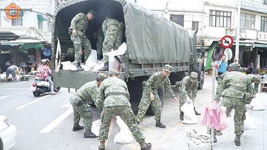 強颱莫蘭蒂預料將會直撲金門而來,金城鎮公所昨(十四)日上午就馬不停蹄的展開防災準備,而金門防衛指揮部砲兵營也於昨日上午約近十一時左右,派出官兵運送沙包至代天府前廣場,協助防颱嚴防淹水。 根據氣象局的資料,金門地區的測量站點,於昨日觀測到的陣風,都在八至十級陣風,每秒風速在十八至二十五,而莫蘭蒂颱風逐漸接,將會影響金門地區,中央氣象局也籲請民眾提早做好防颱準備,此外將有長浪發生機會,盡量避免海邊活動。 而在昨日上午近十一時左右,金門防衛指揮部砲兵營由砲兵營營長徐宗澤,率領四十位的官兵弟兄,載運沙包協助防災準備,並於北提路、五嶽大帝廟、後豐港社區等處,先行幫忙進行沙包堆置,同時也在東門代天府廣場前提供約一千五百袋的沙包給民眾索取,提早預防大雨可能造成的淹水。 颱風未到,但是莫蘭蒂的強勁風力就已經讓人印象深刻了,平均九級的陣風,讓許多路段都出現路樹倒塌的情況,甚至在金湖地區還有出現路樹壓到車輛,導致駕駛受傷的情況出現;而金城鎮的珠山社區,也有一株百年榕樹,因為不敵強風吹拂而應聲倒下,所幸沒有民眾受傷,但是所造成的聲音,讓當地許多的村民都嚇了一跳。 金城鎮公所表示,感謝軍方派出人力協助防颱,公所方面也會盡全力做好防災準備。