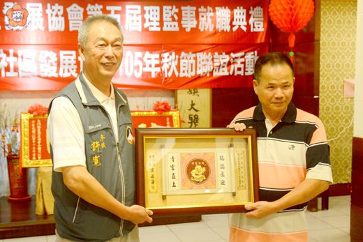金城鎮南門社區發展協會舉行第五屆理監事就職,縣府參議代表縣長陳福海頒贈當選證書與祝賀紀念牌予新任理事長邱嘉樹,並向新任理監事等幹部祝賀,也感謝社區發展協會對於縣政的支持,他也並鼓勵大家行有餘力多參與社區事務,服務社區、回饋社會。 南門社區發展協會第五屆理監事就職典禮於日前假葡京餐廳舉行,並同時舉辦了社區協會暨莒光志工隊的中秋聯誼活動,活動由理事長邱嘉樹主持,縣府參議許寬、金城鎮長石兆瑉、議員李誠智、縣府秘書許金象、民政處副處長蔡輝詩,南門里長楊耀云、卸任理事長李永金、總幹事許燕輝及協會、志工隊成員出席參加,現場氣氛相當熱絡。 許寬代表縣長陳福海頒發當選證書予新任理事長邱嘉樹,同時也致贈陳縣長的「瑞藹常迎、青雲直上」祝賀紀念牌。邱嘉樹理事長頒發新任理監事幹部當選證書,並與理監事合贈「功在社區」匾額給卸任理事長李永金,感謝他任內對於協會的付出與貢獻。 參議許寬指出,陳縣長因公無法到場參加,特別指派他出席,向新任理事長與會務幹部祝賀,感謝大家對於縣政的支持,同時也祝賀大家中秋佳節平安、快樂。 他也肯定南門社區發展協會對於凝聚社區向心力、團結和諧促進社區發展,增進居民福利,提昇社區居民生活品質的貢獻。並鼓勵大家行有餘力都參與社區事務,貢獻所能,服務社區、回饋社會。 石兆瑉鎮長肯定邱嘉樹理事長平日熱心公益為社區服務工作,人氣很旺,此次接任理事長一職,實至名歸,會更認真為社區民眾做更好的服務。 李永金也感謝會員與幹部八年(二任)來的支持相挺,他說,南門社區發展協會在各項業務評比上,也有不錯的成績,擁有一席之地。他也希望大家持續支持新任邱嘉樹理事長,把社區協會的業務發展得更好,提昇社區生活品質。 邱嘉樹形容自己是被「趕鴨子上架」,不過,由此也可以看出他的豐沛人脈基礎孚眾望。他也感謝大家的擁護與支持,未來希望在理監事與會員的協助下,大家一起努力讓社區發展越來越好! 南門里社區發展協會第五屆理監事幹部分別為: 理事長:邱嘉樹。常務理事:楊耀云、許淑慧、李誠智、李增壽。理事:陳水東、陳大隆、鄭清平、薛憶雯、蔡錦駒、許秋霖、許峻岷、許志行、陳添富、翁文贊。常務監事:倪佩輝。監事:許績成、李愛治、鄭易青、莊麗芬。總幹事:許燕輝。副總幹事:吳媽泉。會計:林馬贊。總務:許丕旺。