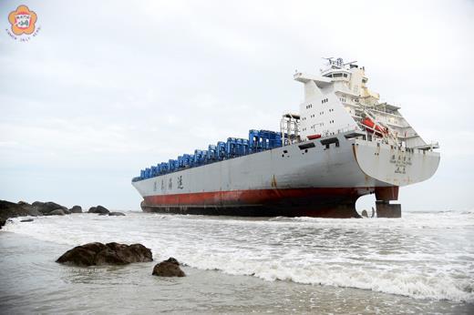 圖文/董森堡 颱風夜的奇幻漂流!颱風莫蘭蒂在金門創造破紀錄的十七級以上陣風,一艘5000噸級「港泰海運」貨船昨竟隨著強風漂流到金門古崗大垵海域,由於船身實在太過巨大,吸引許多好奇的民眾前往觀看。這艘擱淺在岸上的船隻原來預定由陸籍「東海救援船」進行拖救作業,但金門地區受到西南氣流影響,風浪依舊相當強勁,相關單位將待風浪趨緩進行拖救作業,由於該船仍有部份人員在船上,金門岸巡隊、金門防衛指揮部持續以雷達及人員監控船隻動態,確保船上人員的安全。