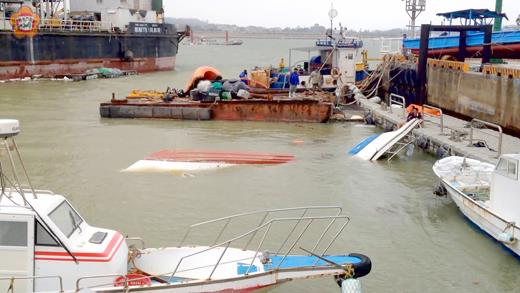 大船斷繩、小船遭殃!數十艘停放於水頭碼頭港區的一隻釣作業漁船,昨日疑受到國登公司混凝土運補船飄移撞擊的影響,沈沒破損在水頭港區內,漁民們不排除提出集體訴訟,要求國登公司賠償損失。 這艘國登公司混凝土運補船原繫於水頭港區南堤,疑因船上繩索未緊繫加上昨日風雨過大,竟然在凌晨一路由南堤飄向北堤一帶的漁船停泊區,由於該船船隻過大,加上又是鋼製的船材,因此碰撞上漁船時造成嚴重破壞,更有船隻直接被撞擊沉入海中。 昨日早上,地區數十名漁友齊聚水頭港區檢視損失,部份船隻沉沒的漁民欲哭無淚,看著耗盡心血買來的漁船莫名消失在港區,還有部份漁民緊急調派吊車在拯救翻覆在港區內的漁船。 洪姓漁民表示,一隻釣的漁船包括船外機、船身、雷達等裝備所費不貲,每艘都是漁民的心血,國登公司的大船沒繫好固定繩索以致於船隻漂流到北堤破壞、撞沉漁船,這種狀況讓他們實在無法接受。 受害的漁民表示,將透過相關管道爭取國登公司賠償損失,爭取自己的權益。