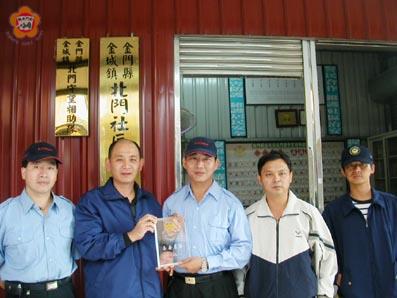 金城鎮北門里守望相助隊,在春安工作期間及平時對地方治安維護的努力獲得肯定,榮獲警政署94年度春安工作協勤民力績效優異獎勵,昨日並由縣警局保安民防課代表警政署頒發獎牌乙面,表示肯定與鼓勵。 縣警局指出,金門的良好治安舉國皆知,這是除了金門地方的民風單純外,一般的百姓更是普遍的守法,雖然近幾年來金門開放小三通及大力推展觀光,增加了許多外來人潮,也造成地方治安的複雜化,又在有限的警力下,金門縣政府經由警察局鼓勵輔導各地方社區,自行組織社區守望相助隊來協助維持地方的治安,這股民間自行籌組的民力,也確實發揮了維持地方治安的力量,並且經常協助警方查獲各類刑案。 縣警局保民課指出,北門守望相助隊在今年春安工作期間,由隊長周浯斌、督導長也是現任里長許績燈、組長許績才等人的帶領下,全力配合協助金城警察所執行春安工作,更在春安工作期間,尋獲法院發佈協尋之未成年少女一名、協助逮捕竊盜案二件、竊盜現行犯三人,並且每天主動派遣隊員協助金城警察所,尋找失蹤的金城老人李炳聰(康祐),雖然李炳聰至今仍未尋獲,但是各守望相助隊隊員發揮人溺己溺的精神,也是大家有目共睹的! 昨日警察局保安民防課課員劉中平代表警政署頒發這項績效優異獎牌,獎勵、肯定北門里守望相助隊平日的優異表現。北門守望相助隊隊長周浯斌表示,這份榮譽是屬於所有守望相助隊員大家的,往後更要秉持這份榮譽,持續為地方的百姓與治安來努力。