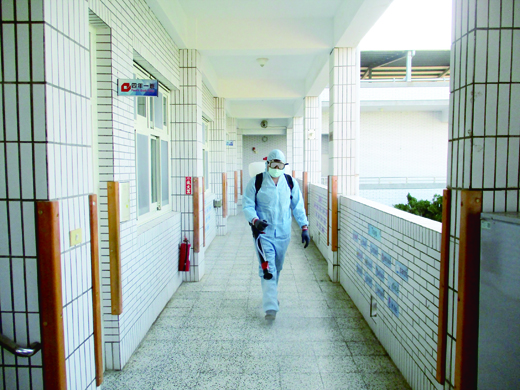 「武漢肺炎」疫情久久不退,眼見下週即將開學,金湖鎮公所近日協助轄區內各級學校進行消毒工作,17日前往正義國小、開瑄國小;18日前往金湖國小、金湖國中;19日前往柏村國小、多年國小、金門農工等校進行消毒。 金湖鎮公所清潔隊員牽著管線在各校內噴灑消毒水,確保校園內每一個角落都有徹底消毒,以便學童開學回到學校時能有安全的上課環境。金湖鎮長陳文顧表示,開學在即,鎮公所關心所有學童的上課環境,徹底進行消毒,希望家長老師學生都放心,全民一起對抗疫情、戰勝病毒。