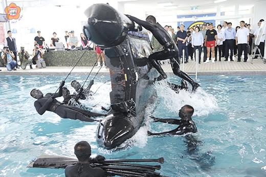 中秋佳節將近,有鑑於地區駐軍戍守金門、協助防務,總統蔡英文昨親抵金門進行勞軍行程,並前往兩棲營等單位致贈慰問金,同時視察戰技操演,慰勉前線駐軍的辛勞。 總統蔡英文是在昨天早上十時許,率同包括國家安全會議秘書長吳釗燮、總統府副秘書長姚人多、國防部長馮世寬及參謀總長嚴德發等人,搭乘空軍一號專機抵達金門展開勞軍行程。 在第一站的勞軍行程中,蔡英文首先走訪陸軍航特部兩棲營,視導航特部兩棲營官兵「水域戰技綜合演練」。操演過程中,參演人員按任務編組,從三層樓的高臺一躍而下,模擬從岩岸、船艦及海堤等地快速入水,執行潛伏任務展現嫻熟技巧。 演練過程並有編隊執行水下滲透的橋段,兩棲營人員搭配「操舟戰技綜合演練」,蛙人弟兄們模擬在惡劣天候下導致舟艇翻覆,以絕佳的團隊默契與訓練,透過「翻舟覆舟」方式,迅速排水,繼續執行後續任務,精彩的身手獲得一片好評。 而在金防部指揮官郝以知的陪同下,蔡英文一行人也前往駐軍營地巡視營舍生活設施,並親手送上加菜金慰問官兵辛勞,向防區佳節送上祝福之意,一行受到駐軍弟兄的熱忱歡迎。 中午,蔡英文間則在金門鑑潭山莊與戍守官兵代表會餐,她盛讚國軍官兵不分晝夜,枕戈待旦,傳承著「守疆衛土」的優良傳統外,也對官兵弟兄平時扮演保衛國家重要角色,擔負著戍守前線的重責大任,讓本島人民得以安居樂業予以肯定,她並祝福金門守軍將士一切平安順遂。