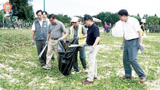 台灣電力公司金門區營業處、塔山電廠於十日下午,號召五百位來自地區機關、團體所屬人員,在中秋節的前夕,一起響應淨灘活動,讓地區的海灘景觀能夠整潔乾淨,一起來為維護生態環境付出一分心力,過一個乾淨的中秋佳節。 台電公司金門區營業處所、台電塔山發電廠、金門縣環保局、金城鎮公所等單位共同舉辦的這場「二○一六淨灘活動」,是在當日下午二時起,假金城鎮的雄獅堡海灘舉行。活動號召了多家承攬金門區營業處各項工程的承攬商、金城鎮公所、第九岸巡總隊、塔山發電廠之承攬廠商、金門國家公園管理處、金門區營業處員工、塔山電廠員工、金門防衛指揮部、第九岸巡總隊、金門縣環保局、夏興社區、水頭社區等多個地區公司行號、機關團體,共約五百人,一起來共襄盛舉。 淨灘活動開場是由台電公司金門區營業處處長王仁炳主持,台電總公司副總經理張明杰、金門縣副縣長吳成典、金城鎮長石兆瑉、金城鎮民代表會主席陳天成、秘書李文俊等人也到場,一起挽起袖子撿垃圾。 副總經理張明杰說,台電除了做好各單位營運及環保工作之外,也持續在投入全台自然環境的改善,而在中秋節前夕的淨灘活動至今也已經邁入第二十三年了,他除了感謝台電同仁,以及地區鄉親與軍方人員的熱情支持,並且串聯各社區,一起讓海岸恢復往昔的潔淨。 吳成典則說,看到大批軍民一同參與淨灘,讓他相當肯定,金門地區海灘的垃圾相當多,金門好山好水,如果能夠有大家的付出,讓地區的乾淨程度增加,相信一定會讓金門很漂亮。 在簡短的開幕儀式後,各單位隊伍隨即分配區塊,展開淨灘活動,有的協助清運垃圾,有的則是拿起夾子撿拾海灘上的垃圾,眾人一起分工合作,還給海灘潔白的樣貌。