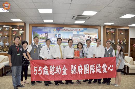 「有愛最美,行善最樂」!中秋節前夕,縣長陳福海率同縣府團隊再度做愛心,共計捐款三十四萬四千元,來幫助社福機構或弱勢族群等。雖然陳縣長還未到可以領取55歲慰助金,但秋節55歲慰助金他個人還是加碼三千元,總共捐款一萬五千元,並盼藉此拋磚引玉,能讓更多領取慰助金的鄉親也能響應貢獻心力,「使慰助金轉化為關懷金」,不管是捐贈給社福團體或是孤獨弱勢者,都代表著金門人良善美德的延續與深化,共同形塑溫暖的社會氛圍讓幸福島嶼得以彰顯。 「領福利,送愛心;沒有領福利,一樣要讓愛心達陣」,就在55歲秋節慰助金發放時刻,金門縣長陳福海昨日上午偕同副縣長吳成典、秘書長林德恭等多位局處、機關主官管,在縣長室將「愛心捐款」予晨光教養家園代表。雖然還不到請領年齡,但他還是希望藉此拋磚引玉,將個人的愛心加碼,嘉惠更多需要照顧的鄉親。 金門這項獨步全國發放的慰助金,源於縣長陳福海擔任立委開出的「五十五歲年金」競選支票,陳福海上任後,「年金」說法轉換成「曾任自衛隊員」概念,最後以「歷經戰地政務時期」定調,主要考量金門男、女過去在十六歲被國軍強制徵召參加民防自衛隊員訓練的犧牲奉獻。 陳縣長說,金門在實施戰地政務期間,存在許多的不公不義,但現在苦難的時代已經過去,現在金門有好的環境,也是全國最幸福島嶼,但這還不夠,形塑愛的氛圍、營造「愛心政府」的堅實基礎,讓這個島充滿愛的正能量,才是他想要的幸福島嶼。 金門縣於八十一年十一月七日之前實施戰地政務,鄉親也遭受一些不公平的待遇,陳縣長表示,現在政府有這個機會來回饋鄉親,縣府主官管都把55歲慰助金這一份遲來的正義轉換為愛心,讓金門的善和愛能夠更為廣泛散播,使金門島處處充滿慈善的力量。 陳縣長曾說「遲來的正義也是正義」,也希望鄉親珍惜本縣福利,還要有一份感恩的心,把「遲來的正義」轉換為正向能量,共同增進金門島溫馨、和諧及善良風氣。 縣府團隊秋節做愛心,總共捐款三十四萬四千元,受惠團體單位有:晨光教養家園、金門浯江南樂研習社、康復之友協會、浯江南管社、烈嶼國中校友會、萬神爺廟、朝陽公德會、青少年關懷協會、伊甸園協會、榮光教養院、紅十字會、私立惠明盲童育幼院、金湖國小校友會、安瀾國小、台北科技大學校友會、家扶中心、福田家園、營源廟、藏青古居、金城新莊、榜林社區等。 秋節縣府團隊做愛心,除縣長陳福海拋磚引玉外,還有副縣長吳成典、秘書長林德恭、縣長辦公室主任陳永明、參議許寬、李錫隆、翁自保、葉媚媚、秘書黃秀珍、消保官顏水坤、金酒公司董事長黃景舜、社會處長甯國平、副處長許美鳳、民政處長陳世保、人事處長蔡流冰、財政處長許志忠、工務處長張忠民、稅務局長王漢文、地政局長許鴻志、文化局長呂坤和、衛生局長陳天順、消防局長楊肅凱、副局長王世祿、大同之家主任楊志斌、農試所所長楊慧明、陶瓷廠廠長陳大鵬、金門日報社社長吳世榮、畜試所所長莊謙恭、殯葬管理所所長張峰杞,以及退休的董應發等人。