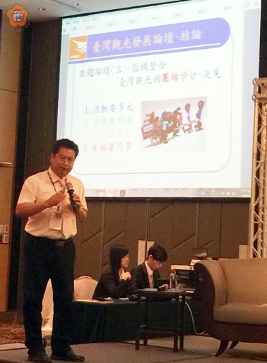 以「臺灣觀光全球藍海」為主題的2016第二屆臺灣觀光發展論壇假台中市舉行,金門大學管理學院院長董燊教授應邀參與該論壇,並以金門力推的運動觀光「金門馬拉松與料羅灣長泳暨金廈泳渡」為例,行銷金門、提昇金門亮點。 第二屆臺灣觀光發展論壇以「臺灣觀光全球藍海」主題,議程中首先由立法院副院長蔡其昌及前觀光局長謝謂君,就交通部觀光局多年來的全球市場佈局規劃,展開精彩的對談!並由交通部觀光局代理局長劉喜臨、臺中市觀光局長陳盛山及台中市國際觀光發展協會理事長柴俊林,分別擔任「東亞市場-臺灣觀光的黃金藍海」、「中進中出-臺灣觀光的分流工程」及「區域整合-臺灣觀光的團結學分」等,擔任三個場次的論壇主持人,另外,並邀請到二十餘位各領域專家學者及產業代表與會擔任與談人。現場湧入近三百位來自全台產官學的代表與會,場面相當熱絡。 「從兩岸到東亞再放眼世界」,這是臺灣觀光面臨陸客限縮危機後,最好的正向思維!2016「第二屆臺灣觀光發展論壇」建議,8%專營陸客團的旅行社及相關業者加快轉型,由於臺灣觀光品牌,多年來在全球媒體累積的正面形象,已為業者開發多元市場提供深厚基礎。而深受陸客環島團客縮減影響,又無法獲取高價自由行散客的中南部及東部業者,更需結盟到海外共同行銷,齊心開發全新的藍海市場以分散風險! 金大管理學院院長董燊教授也應邀參與該論壇,並以金門力推的運動觀光-金門馬拉松與料羅灣長泳暨金廈泳渡為例行銷金門,希望主承辦單位與業者無私結盟攜手拚觀光,旅行業者要連結資源,既競爭又合作,才能打破本位主義,把餅做大共創商機,並期望臺灣觀光的團結學分要朝向1.活動多元化、2.手續簡便化、3.工作專業化、4.有福同享化發展,化危機為轉機,獲得各界高度肯定,也讓台灣各界多一層認識金門不同風貌,提昇金門亮點。
