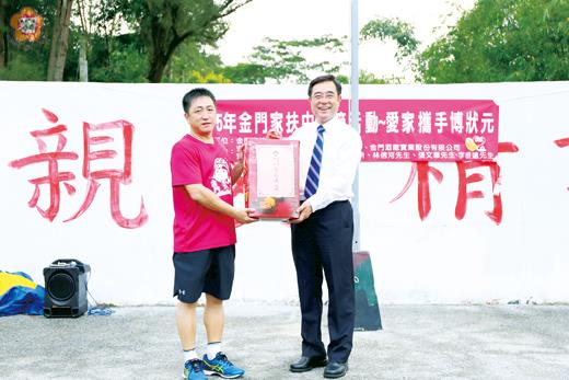 金門家扶中心日昨辦理中秋節「展愛攜手博狀元」活動,30名義工帶領140名扶助家庭親子,透過闖關活動、窯烤手作PIZZA趣以及烤肉等,提前歡度秋節。金門家扶展愛隊精心規劃內容,設計「攜手連心博大餅」等遊戲並自製超級大骰子讓親子體驗博狀元餅樂趣,也成為親子目光焦點。金門家扶中心感謝各界的支持與協助,讓今年中秋節活動別具歡樂與溫馨。 為增加扶助家庭親子參與團體活動,培養親子互動,建立家庭成員營造共同出遊的良好習慣,金門家扶中心辦理中秋節「展愛攜手博狀元」親子活動,並假陽明二營區舉行,現場由展愛隊規劃活動內容,30義工帶領140名扶助家庭成員,透過親子闖關活動、窯烤手作PIZZA趣及香貢貢的烤肉等,在歡樂的氣氛中提前慶祝中秋佳節。 副縣長吳成典也特別到場向所有家長、孩子及義工祝福秋節,並代表縣長致贈博餅禮品供活動使用。金門家扶中心主委李根遠也到場主持始業式,並與翁立奇先生贈送181箱柚子禮盒予扶助家庭,也在活動現場發送給所有參加者,為活動揭開序幕。金門家扶中心主任李桂平、扶幼委員李淑賢及家扶團隊到場與親子同樂。 該活動由金門家扶中心展愛服務隊籌劃辦理,展愛服務隊義工們本著服務家庭之精神與宗旨,特別結合金門中秋傳統博餅創新親子互動娛樂遊戲,以關卡設計方式增加兒童生活體驗,其中,「攜手連心博大餅」義工事先製作超級大骰子,分組為單位,進行傳統搏餅活動,骰子放大好幾百倍,不僅最吸引親子目光,也玩得特別起勁! 活動另一個重頭戲則為「窯烤PIZZA趣」,由地區「窯烤PIZZA王」老闆林錦宏到場講解窯烤使用,並親自示範手作PIZZA,讓義工陪伴親子動手做出PIZZA,大、小朋友吃得津津有味。「窯烤PIZZA王」表示,活動邀約幾位朋友共襄盛舉,除贈送飲料外,也到場支援PIZZA製作,讓孩子及家長度過一個快樂的假期,增加親子共同參與活動的互動時機,豐富不一樣生活體驗。 金門家扶中心指出,感謝各單位(個人)的熱情協助,讓活動更加圓滿順利完成,也讓活動份外的歡樂與溫馨。特別是,金門縣政府(金門縣公益彩券盈餘補助)、金門酒廠實業股份有限公司、李根遠先生、金沙鎮公所、金湖鎮公所、金寧鄉公所、林信河先生、張文章先生等協助經費贊助;窯烤PIZZA王林錦宏捐贈18瓶大可樂與12瓶爽健美茶;郭嘉茵、簫焄安及顏仕媛各捐贈一箱彈珠汽水,金門縣政府贈送貢糖禮盒一箱10入。另外,窯烤PIZZA王、沐康岩盤浴及陳依佑也透過本次活動現場捐款,將做為中心獎助學金。
