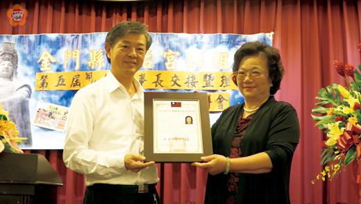 金門縣天后宮媽祖會第五屆理監事就職﹐於昨(八)日下午舉行交接儀式由原任理事長交棒給予新任的理事長徐明華。秘書長林德恭肯定天后宮媽祖會對淨化社會的正向功能﹐並祝福在新任理事長帶領下﹐會務蒸蒸日上。而新任理事長徐明華則說﹐將秉持著媽祖的精神﹐與姊妹們一起努力。 「天后宮媽祖會新任理監事交接儀式」﹐於昨日的下午六時起﹐在盈春閣餐廳內舉行﹐儀式由吳素蘭擔任監交人﹐並在現場貴賓以及會員們的見證之下﹐將印信自林明麗手上交接給媽祖會新任理事長徐明華。 昨日的交接儀式﹐新任理事長徐明華﹑卸任會長林明麗與會員們熱情歡迎秘書長林德恭﹑金城鎮長石兆瑉﹑金城鎮民代表會主席陳天成﹑金門縣政府社會處副處長許美鳳等人到場﹐共同見證新﹑卸任團隊的交接。 秘書長林德恭代表縣府表示祝賀﹐林德恭表示﹐天后宮媽祖會過去對於推動社會和諧做出許多貢獻﹐而且媽祖會多年以來也豎立了獨特的宗教活動禮儀﹐讓大家感覺到社會有在進步。而他也相信在既有基礎之上﹐新任的理事長徐明華的帶領之下﹐必然會越來越好﹐而且能夠成為地區宗教禮俗的標竿。 金門地區媽祖信仰人口眾多﹐林德恭說﹐近年來兩岸進香宗教交流活動很多﹐為兩岸人民往來奠下深厚基礎﹐他肯定媽祖會在這方面的投入與用心。而追求理想社會﹐端賴部分人投入愛心﹐宗教理念就是要勸人向善﹐他也相信這就是媽祖會所要追求的理念。 新任理事長徐明華說﹐接任理事長一職之後﹐她將秉持著媽祖濟世救人的善良理念﹐帶領天后宮媽祖會的姊妹們﹐一起發揚會務﹐並且會致力於社會公益﹐並投入各項宗教活動。 而卸任的理事長林明麗除了感謝各界多年以來對天后宮媽祖會的支持與協助﹐並且感謝該會鑼鼓隊的指導老師李文理的認真﹐以及姊妹們的幫忙﹐她也期勉在徐明華的帶領之下﹐媽祖會的會務能夠日漸完善。 金門縣天后宮媽祖會理監事﹐成員名單分別為﹕理事長﹕徐明華。副理事長﹕蔡能蝦。常務理事﹕陳彩娥﹑陳蓬﹑黃子芳﹑張含麗。理事﹕林淑語﹑吳素蘭﹑許淑慧﹑呂瓊麗﹑楊嫦娥﹑張寶英﹑許明麗﹑何美華﹑林有鳳﹑田麗莉。候補理事﹕蔡瓊珠﹑王碧珍。常務監事﹕洪端雲。監事﹕李麗華﹑沈素英﹑莊美珍﹑李玉葉。候補監事﹕唐麗輝﹑王瑞霞。總幹事﹕陳若娟。副總幹事﹕李寶(石羡)。財務長﹕洪麗雲。會計﹕陳秀香。總務長﹕蔡愛珠。