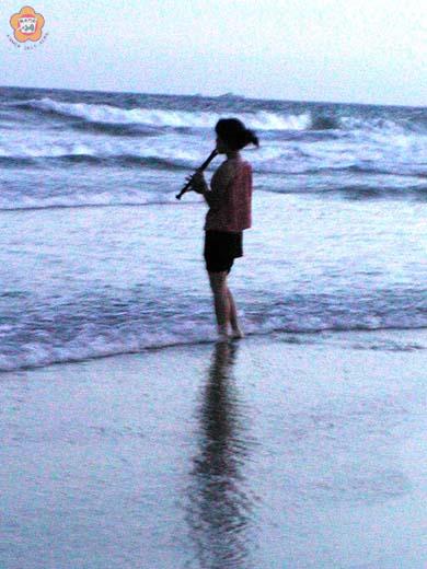 日落時分,姑娘家手持直笛,踏沙逐浪,在尚義海邊伴著海波吹送音波。濤聲澎澎湃湃,笛音續續斷斷。聲浪相迭,韻在其外;音波交響,樂在其中。 金門的好景,還是要有人文藝術活動相配,才有人在圖畫中的別致。