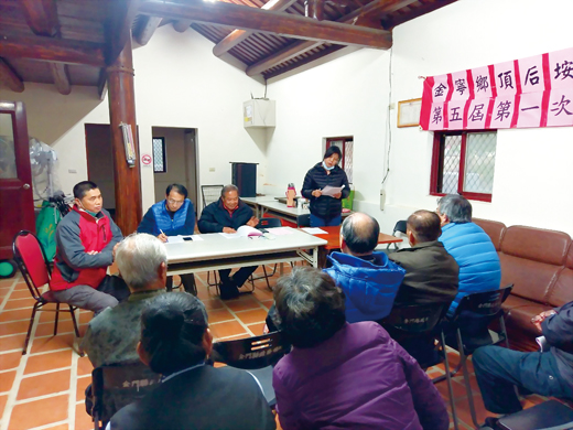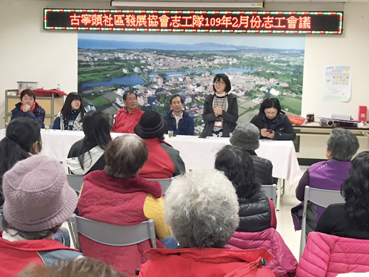 為增進社區志工隊之聯繫與互動,金寧鄉古寧頭社區志工隊日昨召開109年2月份聯繫會議,研討關懷據點常態性共餐服務人力編排與用餐後餐盤清洗、鼓勵國中生參與淨灘發給服務時數、志工清洗宗祠廟宇等相關事宜。縣府社會處王茲繐科長到場列席,指出楊縣長非常注重社區業務的推動,也感謝志工伙伴為社區犧牲奉獻的付出,希望透過社區志工的協助付出,政府資源配合共同來努力,讓社區越做越好,對長者照顧也會越來越好。 金寧鄉古寧頭社區志工隊於日昨在村辦公處二樓社區活動中心召開109年2月聯繫會議,會議由社區志工隊長李開陣主持,縣府社會處王茲繐科長與業務承辦人員,金寧鄉民代表會代表李琳瑯、社區理事長李金鎗、總幹事李俊龍出席、計有志工三十多人出席與會。並由志工隊總幹事蔡素芬就業務進行工作報告。 志工隊長李開陣村長也感謝各志工伙伴對於常態性共餐無怨無悔付出,並指出常態性共餐於春節過後二月份開始辦理,志工人力編排也將重新編排,並要求志工簽到要落實,希望輪班志工能全程參與,臨時有事可提前調換輪班。也說明志工服務時數的取得,包含有關懷訪視,宮廟環境清掃整理,淨灘與共餐都可,鼓勵為熱愛的家鄉和居住的社區奉獻一份心力,共同建設充滿熱情及溫暖氣息,期望藉此次志工聯繫會議,一起分享、討論及交換意見,以利提升志工管理上的效益。 社會處科長王茲繐指出,社區辦共餐活動就是要讓長輩走出來,一起吃飯聯絡情誼,一起參與育樂休閒運動,猶如一個大家庭,社區也有社工來關心長者健康、規劃一系列活動課程,吃飯前做些運動、下午也可在社區下棋、玩牌、安排講座來提供服務,讓社區活動越來越豐富、多元化,其目標主要是鑑於長者過去為金門家庭來打拚付出,現年齡也步入老年了,盼能在自己社區得到好的照顧,自己社區有好的遊憩環境與品質。因此吃飯是其中一環節,還有活動部分會越來越豐富,讓更多長者願意走出來參與活動,這部分縣府會來推動執行,也希望透過社區志工的協助付出,政府資源配合共同來努力,讓社區越做越好,對長者照顧也會越來越好。並鼓勵各據點能積極投入老人餐食社區化之運行,自辦在地的老人營養餐食服務,以在地人提供在地適切餐食服務,如此更能貼近長者需求,達到資源有效利用最大化,期許各據點夥伴平時能互相交流、多聯繫,增進社區能量! 社會處也指出,為提供加值服務,縣府配合中央政府推動的長照2.0服務升級廣佈巷弄長照站,於109年度推出C級巷弄長照站計畫,相關申請作業自2月7日起至2月20日止受理申請,來推廣預防延緩失能失智計畫、社會參與、共餐服務及健康促進等服務項目,特別將服務往前端優化初級預防功能,一起提供長者健康促進、共餐服務、關懷訪視及電話問安等四項服務,透過據點的活動鼓勵長者走出家門,現朝向透過社區關懷據點辦理預防及延緩失能服務以升級為C級巷弄長照站,提供加值服務,嘉惠金門長者。 會中志工也提出社區應規劃架設簡易運動健身器材,讓長者運動健身。也建議長者參與共餐,希望增設一套餐盤清洗槽,讓長者用餐後能自己動手清洗餐盤碗筷等建言。期盼藉此讓長者走出來一起參與各項運動,活動筋骨促進身心健康。