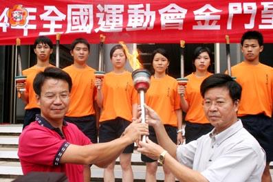 兩年舉辦一次的全國運動會,今年將於十月十五日在雲林縣揭幕。而九十四年全國運動會聖火,昨天上午在金門縣政府廣場舉行傳遞點燃儀式後,展開繞行大金門全島。由於聖火傳遞,這是各縣市傳遞的最後一站,金門縣長李炷烽在迎接聖火,並交由聖火隊繞行全島同時,也向縣民傳達全國運動會十月十五日在雲林縣揭幕的喜訊。 九十四年全國運動會聖火,是由大會聖火組副組長許宏男、雲林縣北辰國小主任張明連、北港國中主任陳川培等三人護送到金門。昨日上午九時並在金門縣政府廣場舉行迎接聖火儀式,許宏男將象徵光明的聖火交給金門縣長李炷烽,在場觀禮的還有立法委員吳成典、縣府主任秘書翁廷為、教育局長盧志輝、主任督學陳金文、課長許能麗、金門縣立體育場場長許換生等人。 縣長李炷烽表示,全國運動會聖火傳遞到金門,這是金門的榮幸,希望光明的火炬,在金門更亮、更大,讓金門的光明照亮台灣的一些黑暗。而在體力、耐力、毅力即國力,運動為國家發展的根本,並期待人人多運動、個個更健康。許宏男則代表大會感謝金門協助聖火傳遞工作,也歡迎大家到雲林參觀運動會,接受雲林人的熱情。 而由國立金門技術學院十二位學生組成的聖火隊,在從縣長李炷烽將聖火傳遞點燃各火炬後,即各持聖火把在警車開道,展開繞行大金門的金城鎮、金湖鎮、金沙鎮和金寧鄉,所經市區、街道也受到民眾歡迎和注目。 至於聖火傳遞主要路線為:(一)金城鎮:第一階段|縣政府、民生路、中興路、莒光路、貞節牌坊、民族路、東門圓環。(二)金湖鎮:中央公路、小徑、成功、信義新村、山外公車處、中正路(僑聲戲院)、復興路、黃海路、下莊、八二三紀念碑。(三)金沙鎮:八二三紀念碑、陽宅、榮湖、金沙戲院、博愛街、金沙車站、金沙鎮公所、斗門、中蘭、瓊林、后盤山。(四)金寧鄉:頂堡、湖南、安岐、林厝、北山、慈湖、湖下、下埔下。第二階段|下埔下、金門高中、光前路、民權路、縣立體育場。 全運會聖火,昨日晚上並在金門縣立體育場過夜,今天將由聖火組護送回雲林縣,再繞行雲林縣各鄉鎮,十月十五日傳回斗南運動場,在開幕典禮正式點燃。 今年全國運動會,金門縣組成五十八人代表隊,將參加競賽項目有男子組的田徑、跆拳道、保齡球、自由車、帆船、健美,女子組有田徑、跆拳道、保齡球、自由車、帆船等項目比賽,並將由縣長李炷烽率隊出征。