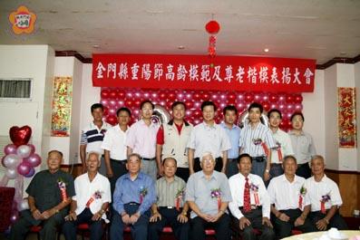 重陽節前夕,金門縣長李炷烽昨日頒獎表揚高齡模範、尊老楷模,也祝福地區所有「長輩」們身體健康、家庭幸福美滿,老人節快樂。他也期待透過表揚活動,帶動縣民發揚敬老尊賢的美德,讓老人們能生活在快樂的島嶼中。 隨著重陽節的到來,各鄉鎮公所連日來紛紛舉辦老人進香祈福參訪活動,也表揚轄區內選出的高齡模範、尊老楷模,各社區發展協會也展開慶祝重陽節活動,炒熱了屬於老人們節日的氣氛。昨日中午,縣政府也舉辦重陽節表揚大會,由縣長李炷烽主持,包括,金城鎮長蔡輝詩、金寧鄉長李文俊、金沙鎮長黃奕焮也到場向獲獎的高齡模範、尊老楷模,表達賀節之意。籌辦活動的縣府社會局把會場佈置的喜氣洋洋。 李縣長逐一頒發獎狀和禮金三千元予由各鄉鎮公所推薦的高齡模範陳見官、陳忠信、楊誠約、許吉生、林登保等五人以及尊老楷模林馬贊、蔡海南、陳滄龍、張文宏、林世在等五人。李縣長推許獲獎的高齡模範,平日熱心地方事務,參與地方活動,家庭幸福美滿;也肯定獲表揚的尊老楷模,這一份敬老尊賢的表現。 此外,膺選全國高齡模範的林金龍、陳水炎兩人,也獲得李縣長頒發新台幣五千元程儀,恭喜兩人是模範中的模範,為他們台灣的受獎行程祝福。他表示,敬老尊賢是傳統美德,但隨著功利社會到來而式微,希望透過表揚活動,帶動重視敬老尊賢的社會價值,這也是在重陽節舉辦表揚活動的最主要意義。李縣長表示,這幾年來,縣政府致力社會福利推動,老人福利與照顧服務工作也是其中一項,也有具體的成果,在全國各縣市中,金門縣的敬老福利,可說是全國首屈一指。他指出,金門最近被評選為全國的快樂城市,縣府將繼續致力社會福利推動,期使老有所安、壯有所用、幼有所長,讓縣民生活在快樂的環境中。 他也希望透國媒體的傳播報導,期待縣民重視關心「長輩」們,發揚敬老尊賢的美德,讓老人們能生活在快樂的城市中。 重陽前前夕,李縣長也向全縣「長輩」們賀節,祝福大家生活健康又快樂。他也強調現有的各項老人福利與照顧服務工作,會繼續努力來執行,而且還要愈做愈好,讓老人家在晚年生活獲得政府更多的實質照顧。 桃園縣縣長選戰,老人年金沒有發放的問題,引來現任的縣長與對手互相抨擊,現任縣長推給中央,對手則指責施政不力,相較金門的老人家所享受的許多福利,金門老人真幸福。