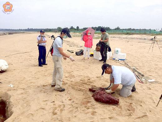 金門海灘驚見死亡海豚!金門岸巡隊接獲民眾報案表示,在金寧安岐出海口有1隻死亡鯨豚,岸巡隊會同縣府建設處農林科、中華鯨豚協會等人到場勘查,發現是1隻約2公尺長的雄性保育類「中華白海豚」,死因是海上自然死亡。 金門海岸巡防總隊日前接獲民眾報案,於金寧鄉安岐出海口至北山安東2號陸軍營區間岸際,發現1隻死亡鯨豚,請求協助處理。接獲報案後,金門岸巡隊通報金門縣政府建設處農林科、中華鯨豚協會等單位協同處理。 29日金門縣政府建設處農林科鐘科長、中華鯨豚協會郭專員及擱淺救援張組長等5人抵達現場處理。經勘驗後表示該品種為瀕絕保育類鯨豚-中華白海豚(又稱印度太平洋駝背豚),全長203公分,雄性,死因為海上自然死亡,近期於金廈海域常發現其蹤跡,最後由金門岸巡總隊將死亡鯨豚以現地掩埋方式實施後續處置。 金門岸巡總隊表示,海巡工作攸關岸海安全、社會治安、經濟秩序、防疫衛生及海洋資源永續利用,該總隊亦致力澈底杜絕走私、偷渡等不法活動,執行救難救助服務;確保當地鄉親生命財產安全及生態保育維護。另金門岸巡總隊呼籲,廉能是政府的核心價值,公務員應堅持廉潔、拒絕貪腐。故鄉親如遇有任何關於「海事服務」、「海難救助」、「海域執法」等問題,請立即撥打118免費服務專線,該總隊將於第一時間前往處理。
