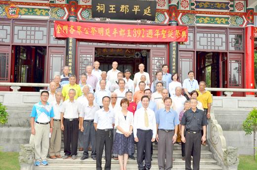 昨日適逢明延平郡王鄭成功392週年聖誕,縣長陳福海上午率縣府團隊,並與議長洪麗萍及金門鄭氏宗親等,在金城鎮夏墅延平郡王祠公祭國姓爺鄭成功,緬懷這位明末清初的愛國英雄,公祭場面隆重、莊嚴肅穆。 金門各界公祭明延平郡王392週年聖誕祭典,昨日上午九時隆重舉行,由縣長陳福海、議長洪麗萍擔任主獻官,副縣長吳成典、秘書長林德恭、金門縣鄭氏宗親會理事長鄭藩派任陪獻官,與祭人員縣府及附屬單位主官管、金門鄭氏宗親代表等參加。 陳縣長、洪議長率同陪獻官、與祭者等,遵循傳統古禮依序上香、獻鮮花、獻爵、獻饌、獻果品、獻金帛,並率領大家向明延平郡王神像行三鞠躬禮致敬,表達對民族英雄鄭成功的追思與懷念,公祭場面盛大隆重、莊嚴肅穆。 隨後,金門鄭氏宗親會也舉行家祭,流露出慎終追遠的純樸民風。 南明時期鄭成功以金門、廈門為反清復明根據地,率兵兩萬五千人,戰艦近五百艘,從金門料羅灣發航東指台灣,從台南鹿耳門登陸驅逐據台的荷蘭人,完成光復台灣的民族偉業,其豐功偉業值得後世讚頌。 夏墅村郊「延平郡王祠」建於1968年,面向鄭成功的故鄉福建南安石井,縣府妥善保存鄭成功的史蹟資產,除了延平郡王祠外,像是鄭軍銅砲以及太武山觀兵弈棋處、烈嶼國姓井、山前鄭氏祖墳等多處文化遺蹟,及2009年豎立於建功嶼上的大型鄭成功石雕像等,目前已成為見證歷史的觀光景點。