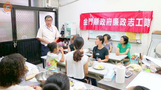 金門縣政府廉政志工隊昨(26)日上午9時至12時及下午14時至17時在金城鎮貝果烘焙坊舉辦「105年度廉政志工讀書會」,邀請賴祝慧老師擔任講座,透過「烘焙餐點製作」教學,教導廉政志工及共同參與的夥伴們製作中秋節蛋黃酥,本次課程有40餘人報名參與,在賴老師帶領下,學員動手做,不僅學到了烘焙技巧,也讓志工夥伴間的情誼更加緊密。 這項讀書會係由縣府政風處及廉政志工隊共同規劃,擔綱講座的賴祝慧老師為「金門貝果預約烘焙工作室」負責人,賴老師擁有多類烘焙餐點專業證書,並於烈嶼國中技藝班及金門家扶中心擔任特約烘焙老師,亦曾經於碧山社區、福田家園開班授課,參加人數踴躍,深受學員們喜愛。 「如何製作蛋黃酥?」賴祝慧由一開始的餅皮製作到發酵、包餡,到最後成品,每一個細節都有實用和精闢的講解,而藉由實際操作,更讓志工朋友體會到「現學現賣」的趣味性,以及製作過程中志工情誼的聯繫。