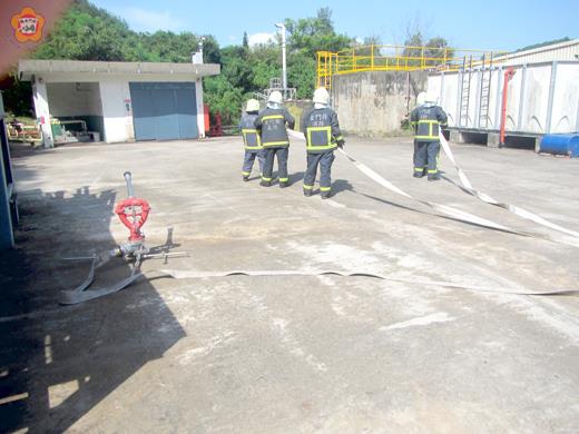烈嶼消防分隊假麒麟山電廠舉辦油槽失火搶救演練,整個演練過程詳實逼真,猶如真實救災現場,提升警消救災的應變能力。 烈嶼消防分隊指出,為貫徹副縣長吳成典於公安會議指示消防局加強各轄區危險場所消防搶救演練,以肆應災害發生之緊急應變處置模式以及所屬消防人員災時消防戰術執行能力,辦理油槽失火搶救演練。 烈嶼消防分隊表示,現場為模擬儲油設施因不明原因失火,由警衛向119勤務指揮中心報案求救,烈嶼分隊獲報後出動消防車組及人員共計11名,抵達現場後,經指揮官研判:「現場無人員受困,無人命傷亡之虞,但油槽儲存之油類屬易燃性質,為避免搶救過程洩露並接觸火源引起爆炸,造成救災人員傷亡,現場須以泡沫水霧進行搶救及防護,並由同仁確認有無洩漏情形」,到達現場立即展開搶救佈署作為,由一組人員先佈水線以泡沫水霧防護至儲油設施油槽旁進行初步防護,另一組人員利用水霧防護下架設移動式砲塔增加防護面積以期降低危害範圍,救護人員疏散現場電廠工作人員,確認工作人員是否有其他外傷並送醫急救,整個演練過程詳實逼真。