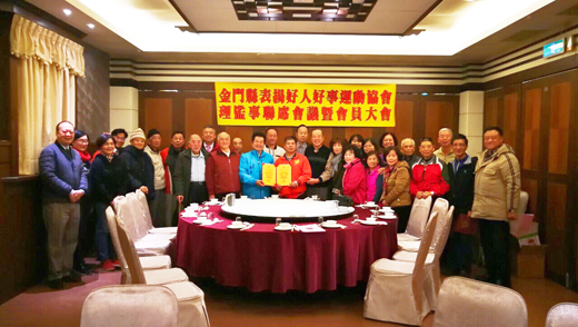 金門縣表揚好人好事運動協會召開第九屆第二次會員大會,會中除針對會務工作及各項提案進行討論外,理事長王水彰並頒發顧問聘書,縣府社會處長董燊代表楊縣長到場向投入社會公益的會員與幹部表達最高敬意,肯定該協會發揚「存好心、說好話、做好事」三好精神,對社會之付出。推廣四維八德傳統倫理道德,移風易俗,讓社會更加祥和。 金門縣表揚好人好事運動協會日昨上午十一時許假盈春閣餐廳召開理監事聯席暨會員大會,由理事長王水彰主持,縣府社會處長董燊代表楊縣長到場致意,該會常務監事李國基與各理監事、總幹事陳永祺等會務幹部及會員代表出席,會中除進行理事會、監事會工作報告,總幹事陳永棋報告年度的會務工作及歲入歲出總決算案,同時針對新加入會員等各項提案進行討論通過,王水彰並頒發第九屆顧問聘書給予王國代、王振利、翁國團、楊其勳等員,感謝其為社會熱心的付出貢獻。 在盈春閣的會員聯誼餐會中,縣政府社會處長董燊代表縣長與會、國民黨金門縣黨部石兆■主委等都到場參與,肯定金門縣表揚好人好事運動協會為地區發掘好人好事等服務工作的貢獻與付出。再度蟬聯理事長的王水彰特別感謝會員的支持與協助,並指出,這次蟬聯也加重他對協會的責任,只有把會務工作做得更好,才能回報會員的相挺。會中也歡迎陳森照、葉淑蓮、楊川妹、黃明鸞四位會員一起加入該會,為協會注入新血。