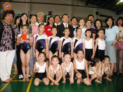 「翻滾吧!女孩」,曾經也是體操好手的行政院長謝長廷,昨天前往金湖國小參觀學校體操隊,他對湖小體操隊成軍短短兩年來,已拿下全國體操錦標賽好幾面金牌等殊榮,讚不絕口,除了當面贈送五十萬元培訓大紅包外,還允諾全力支持體操館的建館經費,希望金湖國小體操隊在奧運等國際性比賽中大放異采,為國爭光。 過去曾經也苦練過體操運動的謝揆,昨天下午接受金門縣政府、金門體操運動委員會主任委員陳滄江邀請,前往金湖國小參觀所屬體操隊小選手們的培訓過程,以及視察體操訓練場地,受到湖小體操隊十四位體操小選手們熱情獻花及高聲歡呼:「謝爺爺好!謝爺爺好!」,盛大迎賓,不遜色於連戰到大陸母校參訪場面,令人溫馨。 湖小體操隊為歡迎謝爺爺及中央高層長官的到來,現場也表演了側翻、倒立與地板等高難度動作,博得滿堂的喝采及掌聲;謝揆說,「台上一分鐘,台下十年功」,一個完美的體操表演動作,是要經過上千次的苦練才能達成。過去他在訓練體操時,沒有海綿墊可以緩衝體操結束時的動作,如果有任何不慎,很容易受傷。 針對沒有完善的體操訓練的安全設備處境,謝揆可以說是非常感同身受,所以,當縣體操運動委員會主任委員陳滄江、縣長李炷烽、省府主席顏忠誠極力爭取的籌建「體操館」工程,其建館的經費尚差二、三千萬元,他毫不猶豫及考慮,當場表達全力支持的立場,這份建館大紅包,令小選手們乍聞之下,個個高興齊聲歡呼,「謝謝,謝爺爺!」的聲音此起彼落。 謝揆肯定金湖國小體操隊培訓成果,他說:「現世界各體操國包括羅馬尼亞等,以及台灣本島肯吃苦的體操選手已不多了,沒想到金門來還能看到金門小選手苦練體操,充份展現出戰地戰鬥精神,實在難得可貴」,他也相信以小選手苦練的精神,若趕不上二○○八年奧運,絕對可以在下屆奧運、亞運等國際賽發光發亮,前途看好。 昨是謝長廷就任行政院長首次金門行,他也說明,目前政府每年投入體育方面的預算只有二十六億元左右,未來如果可以的話,將儘量將預算提升到五十一億,希望能發展國家重點、有希望的體育;謝長廷之後除了致贈五十萬元培訓經費,並和省主席顏忠誠、縣長李炷烽等等,以及金湖國小所有體操小選手、教練黃宗瑞、梁萍合影留念。 金湖國小體操隊九十二年元月廿一日正式成軍,隊員以國小低年級及幼稚園小朋友為遴選培訓對象,其中年齡最小是小班的曹己容,她僅有五歲,加入體操隊有三個月、另還有一名六歲吳毓華,她是中班,去年十月開始練體操,目前總計有十四名隊員,其中,小隊長蔡佳珍等先後參加全國比賽,成績表現亮麗。 有關體操館籌建,縣府已跨九十四年、九十五年度共編列一千八百三十萬元經費作為建館初期經費,經建築事務相關單位評估,一座基本標準的體操館興建及設備尚不足二、三千萬元,昨天在謝揆的大方承諾全力支持之下,建館已是指日可待了;這座體操館預建地擬建在現湖小體育館前,緊鄰黃海路的大門口旁的方向。