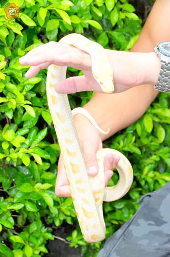 一位民眾在金城寶貝園地幼兒園附近巷道看見有蛇類出沒,金城消防隊接獲民眾通報後,經派員捕捉確認為常見的寵物爬蟲「黃金蟒」(見圖)後,已轉交金門縣政府農林科收容;縣府呼籲飼主盡速出面認領,並請有飼育類似寵物鄉親加強管理,避免外來種繁衍或其他意外發生。 這隻「黃金蟒」是於十四日早上七時被發現的,縣府農林科鐘立偉科長表示,這次捕捉到的黃金蟒即為白化的雌性緬甸蟒,是常見的寵物蛇,體長約108公分,重約300多公克。 鐘立偉也表示,「黃金蟒」在飼育上較為困難,但也能養成三公尺以上的體積;民眾若有飼養意願須謹慎評估,由於「黃金蟒」身上並無注射晶片,鄉親若知飼主身分,請向縣府農林科聯絡(082-321254)。 農林科也表示,縣府自去(104)年開始委託金門縣野生動物救援暨保育協會處理緊急野生動物救傷業務,今(105)年一月至七月間,共計處理一百二十四隻野生動物,其中以鳥類九十五隻占多數,其次為蛇類十三隻、哺乳類動物十隻、龜類六隻,但一般寵物並非協會處理範圍,故仍由縣府收容。 農林科指出,本縣今年度並陸續有南美蜥、巴西龜、斑龜、虎皮鸚鵡等多物種寵物被通報收容,且許多個體在外面流浪許多,易因受傷或營養不良等因素造成收容後死亡。 在烈嶼鄉亦多次通報有野化鸚鵡出現,為避免造成外來種入侵或疫病傳染問題,縣府建設處農林科籲請飼主務必留意動物照養及籠具結構安全問題,相關動物若經一定期間無人認領,後續將尋求其他單位收容。